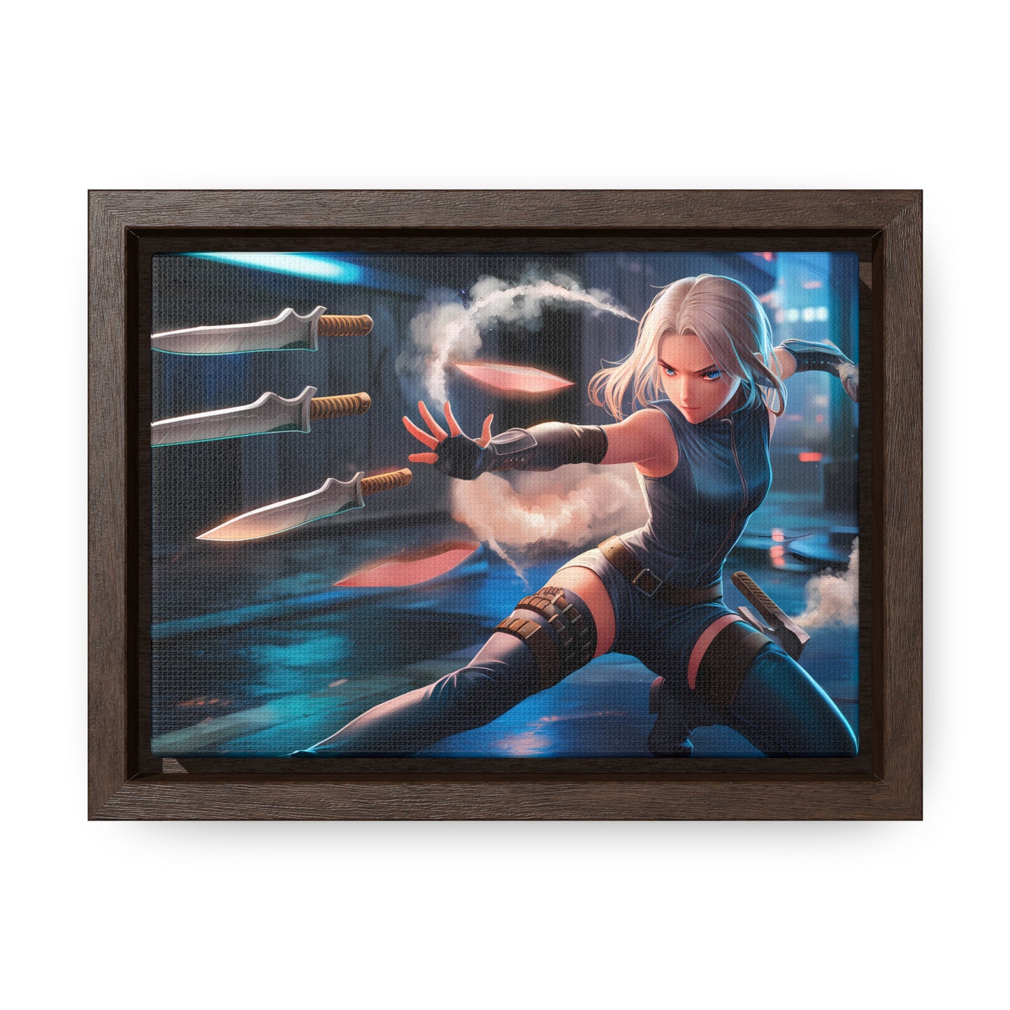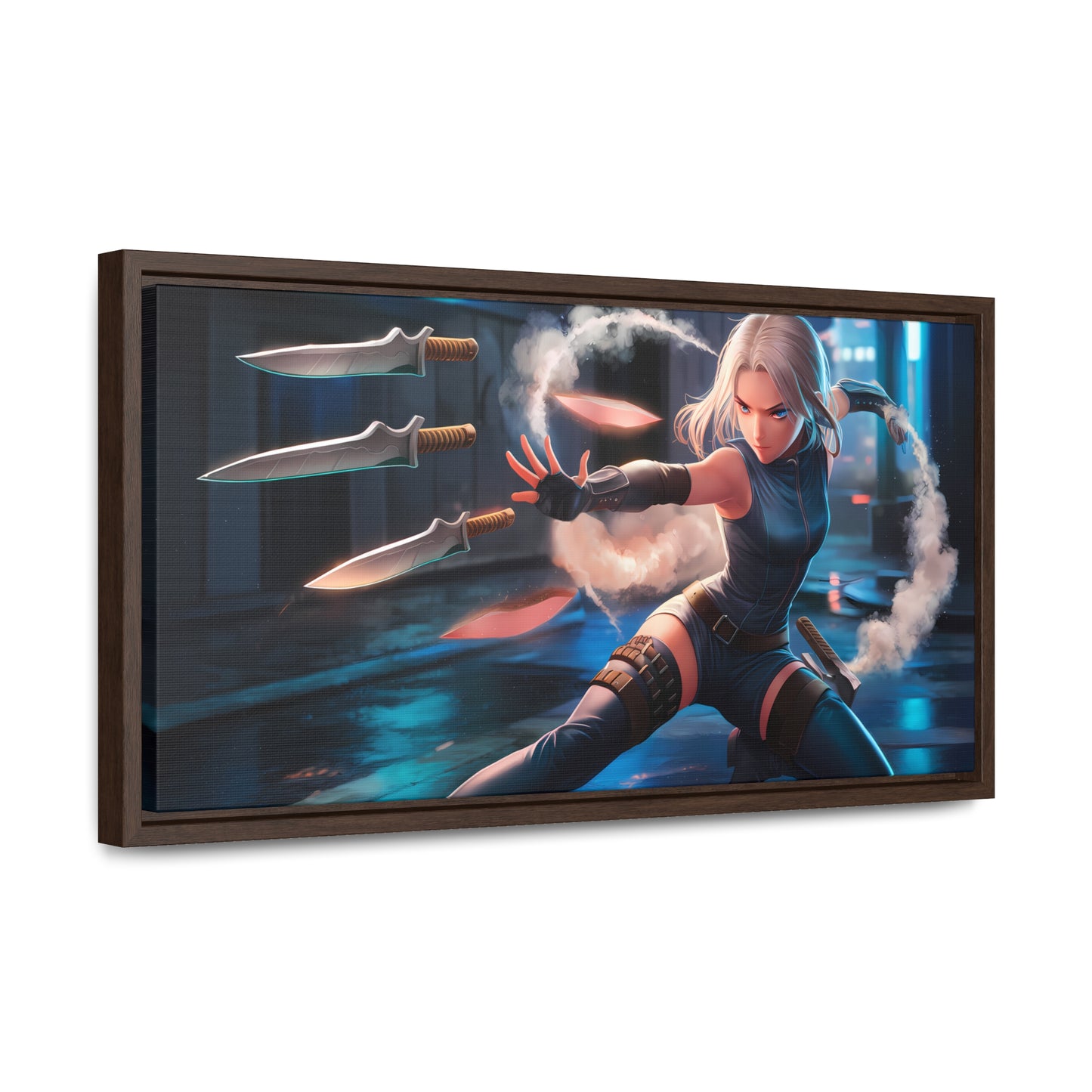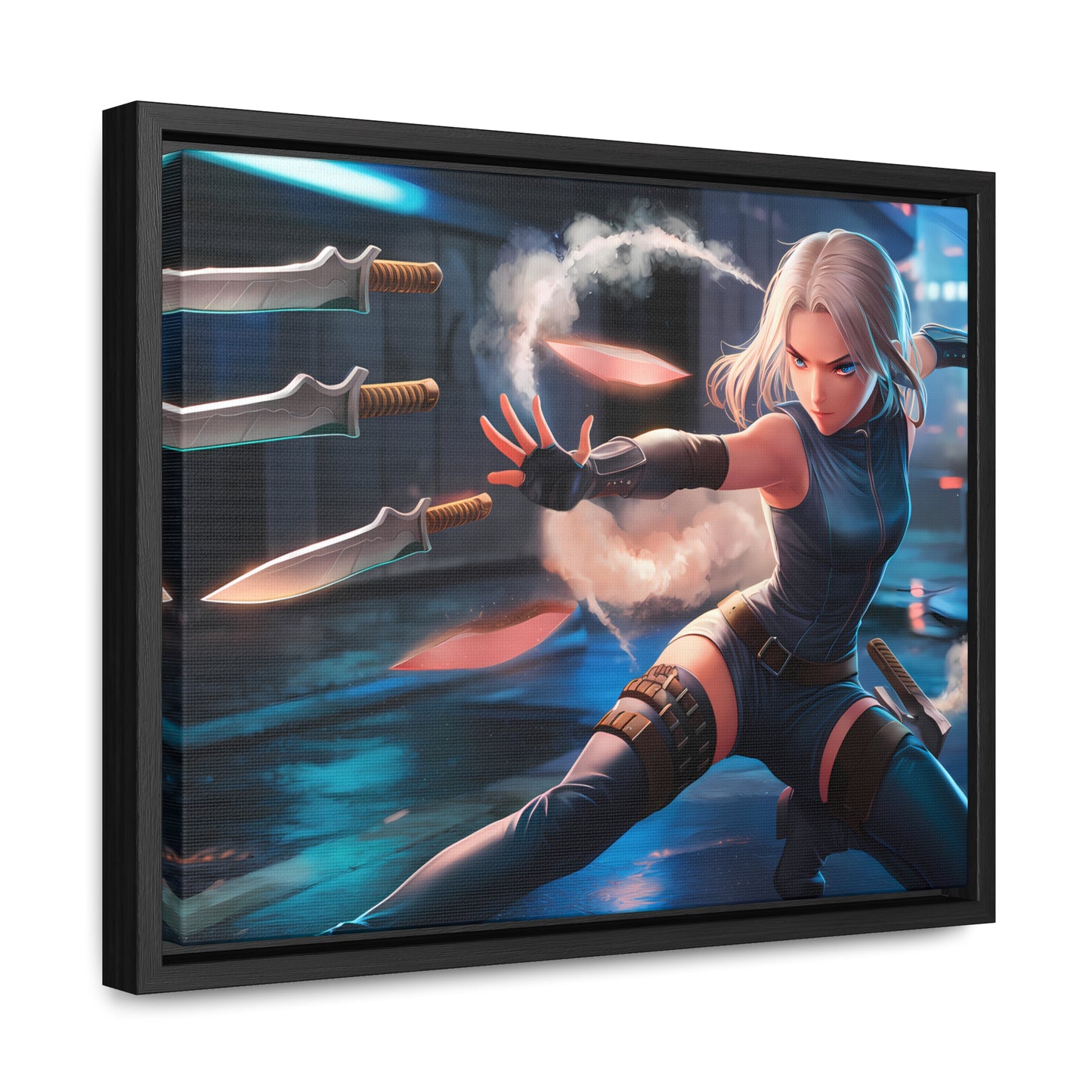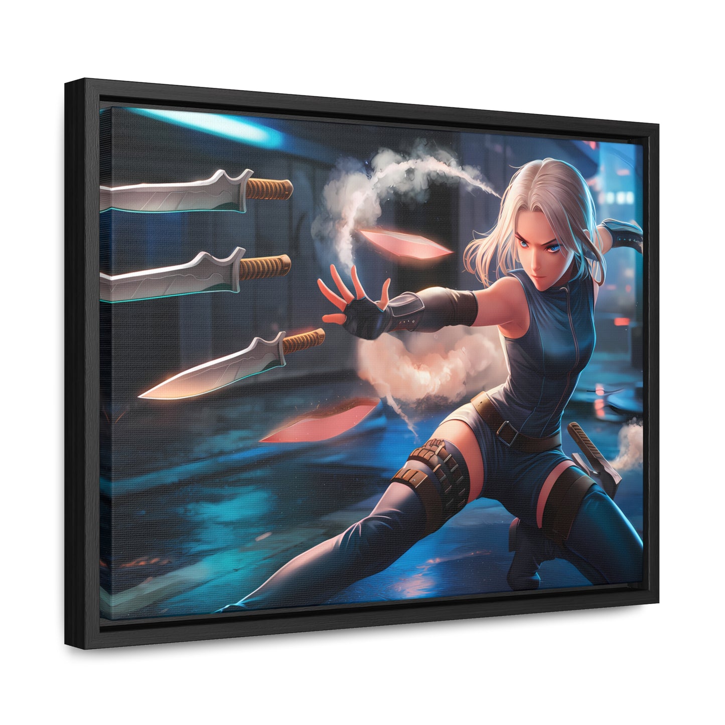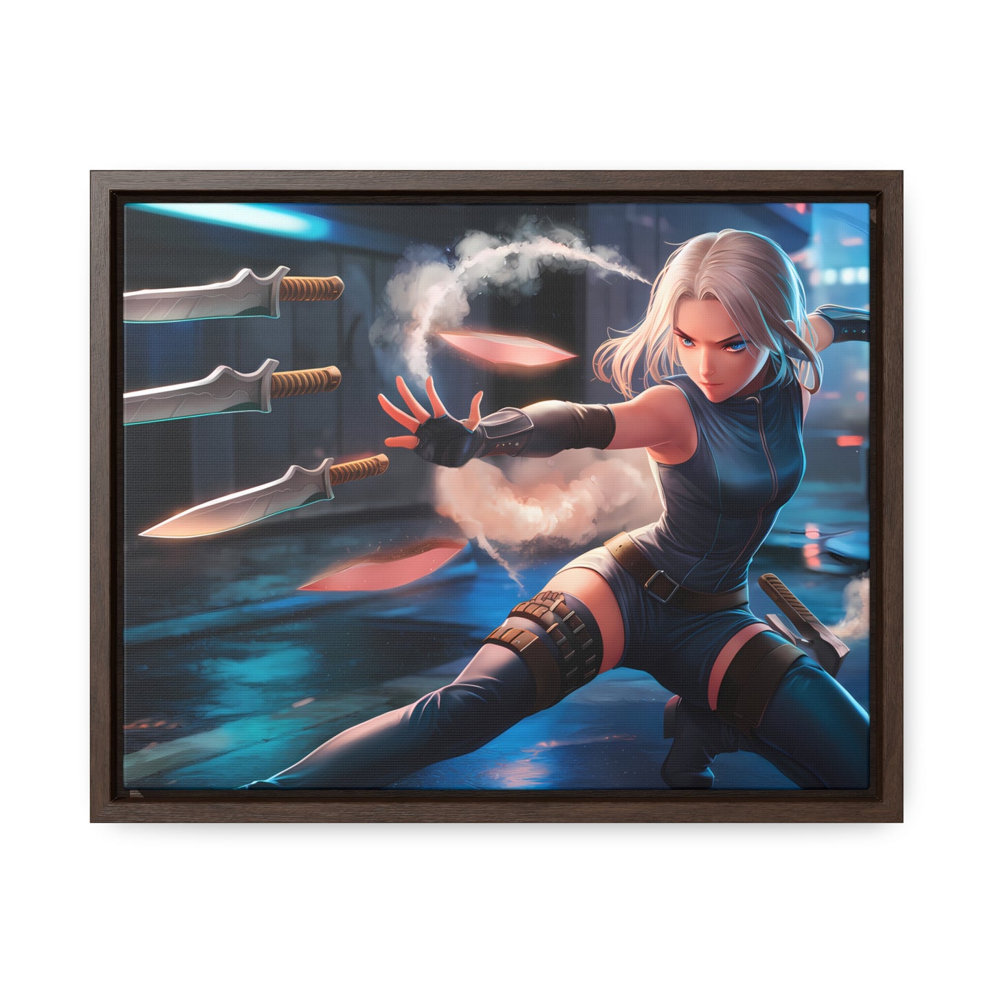 Blade Dancer in the Neon Shadows - Gallery Canvas Wraps, Horizontal Frame