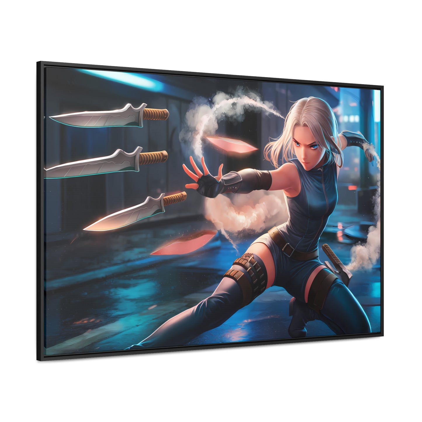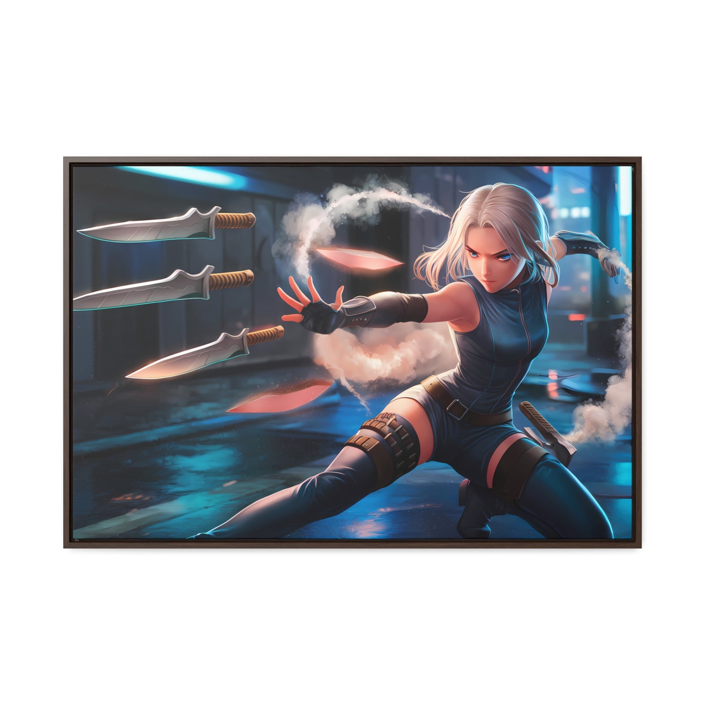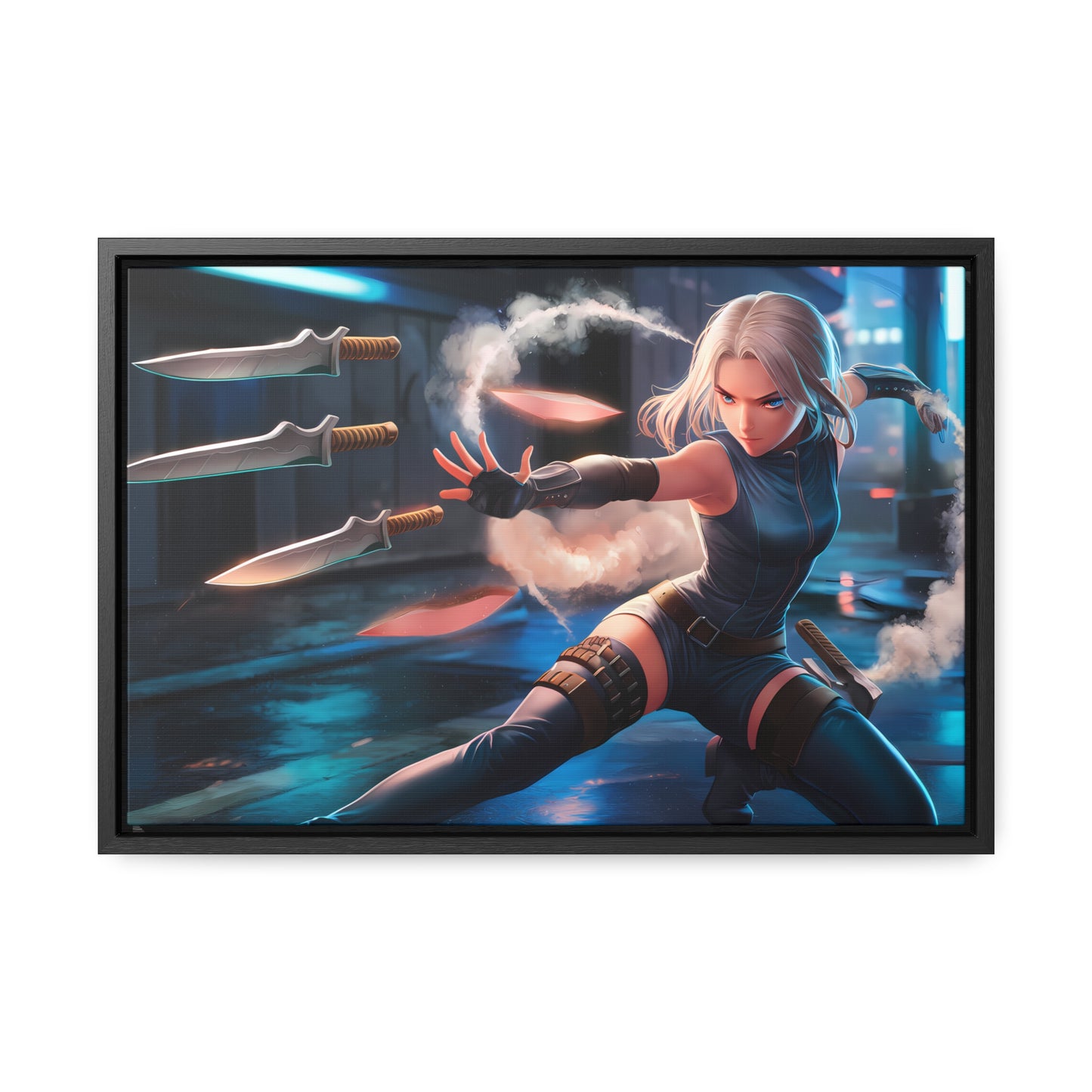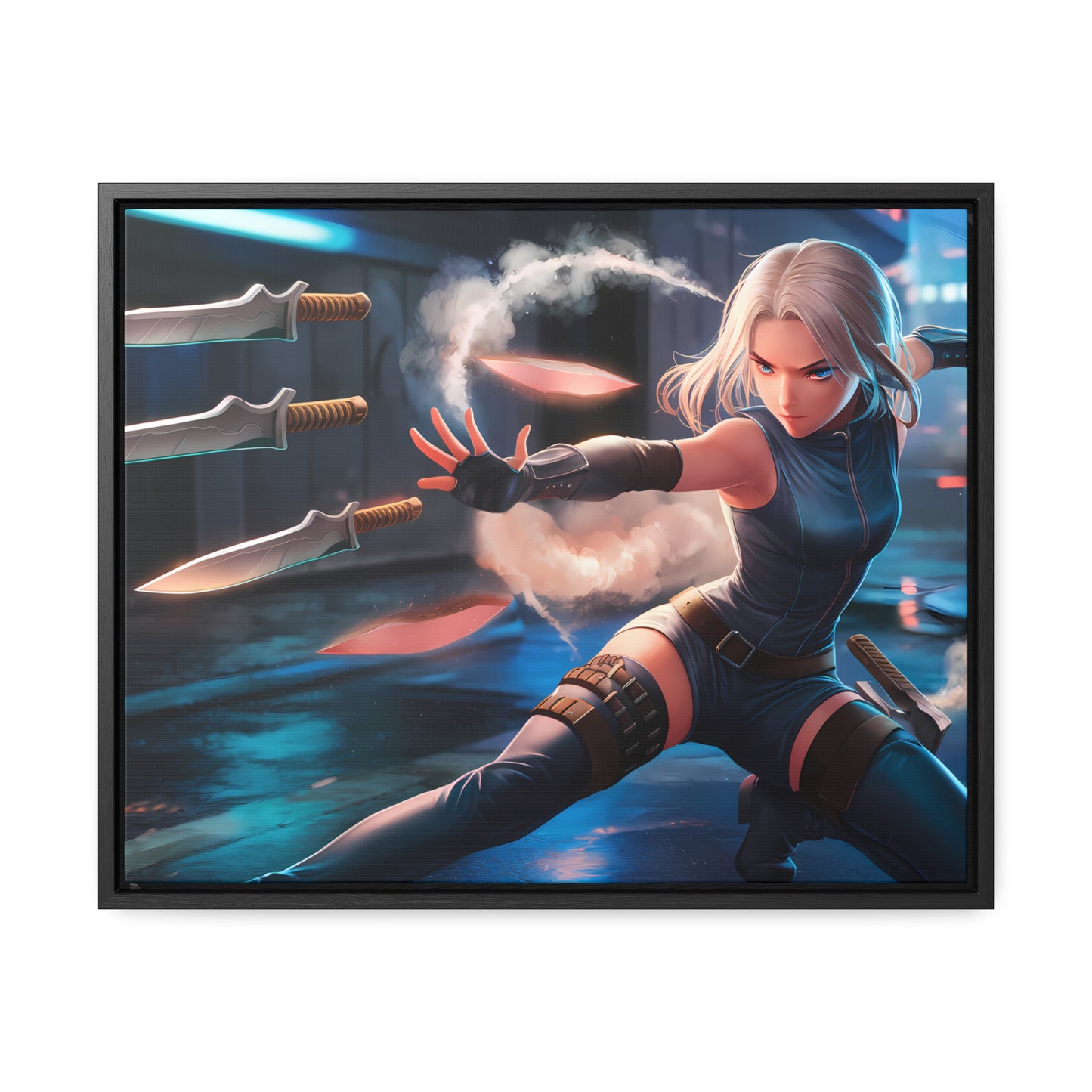 Blade Dancer in the Neon Shadows - Gallery Canvas Wraps, Horizontal Frame