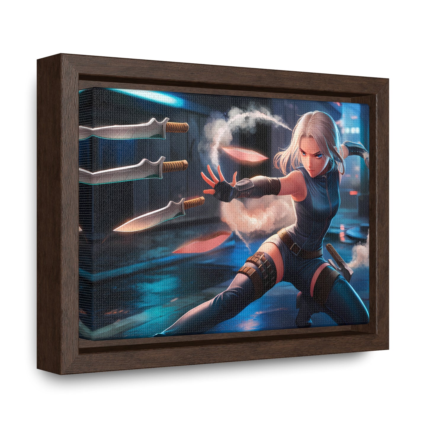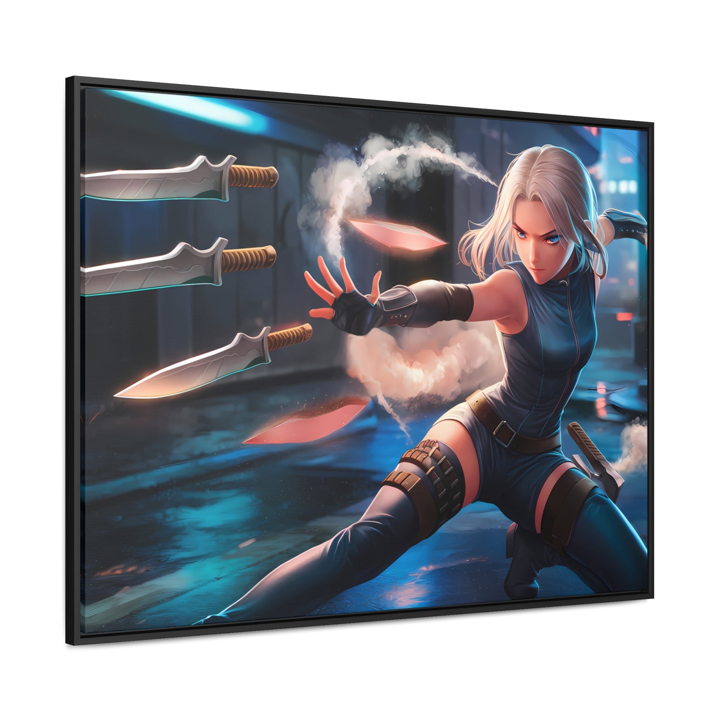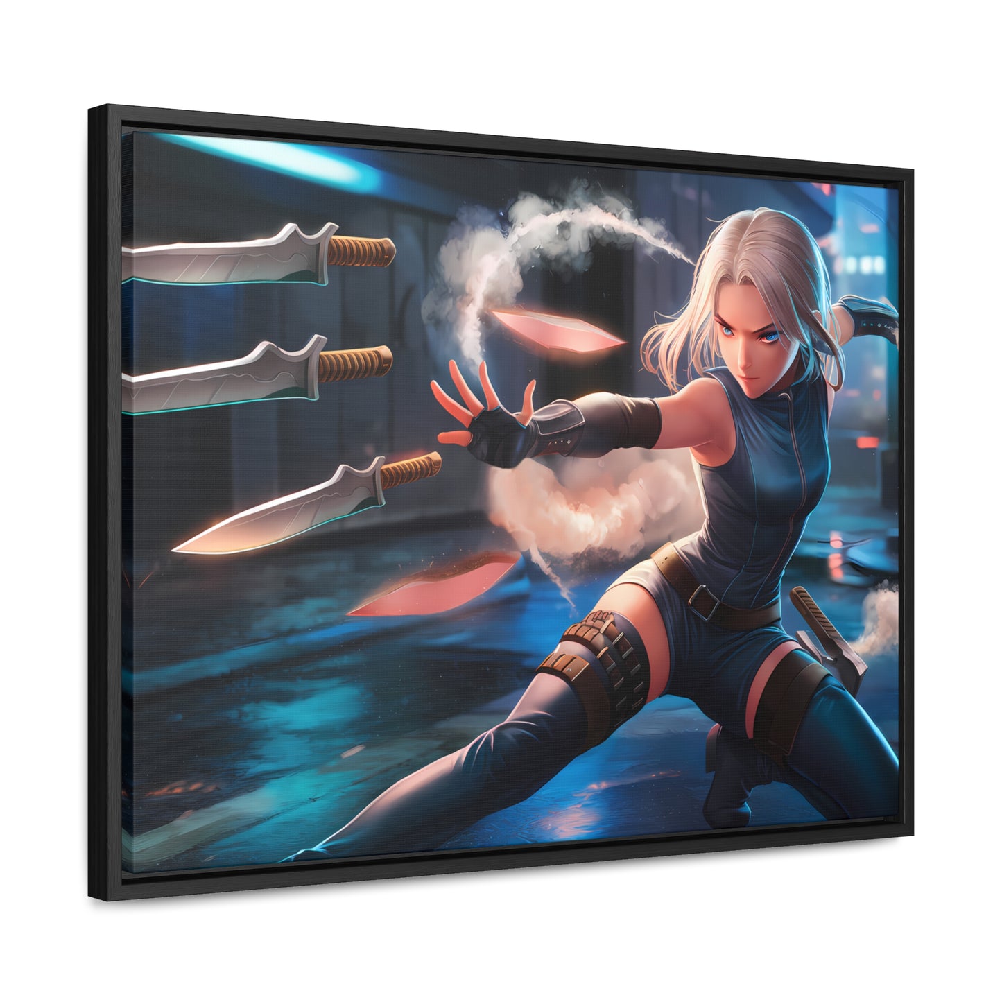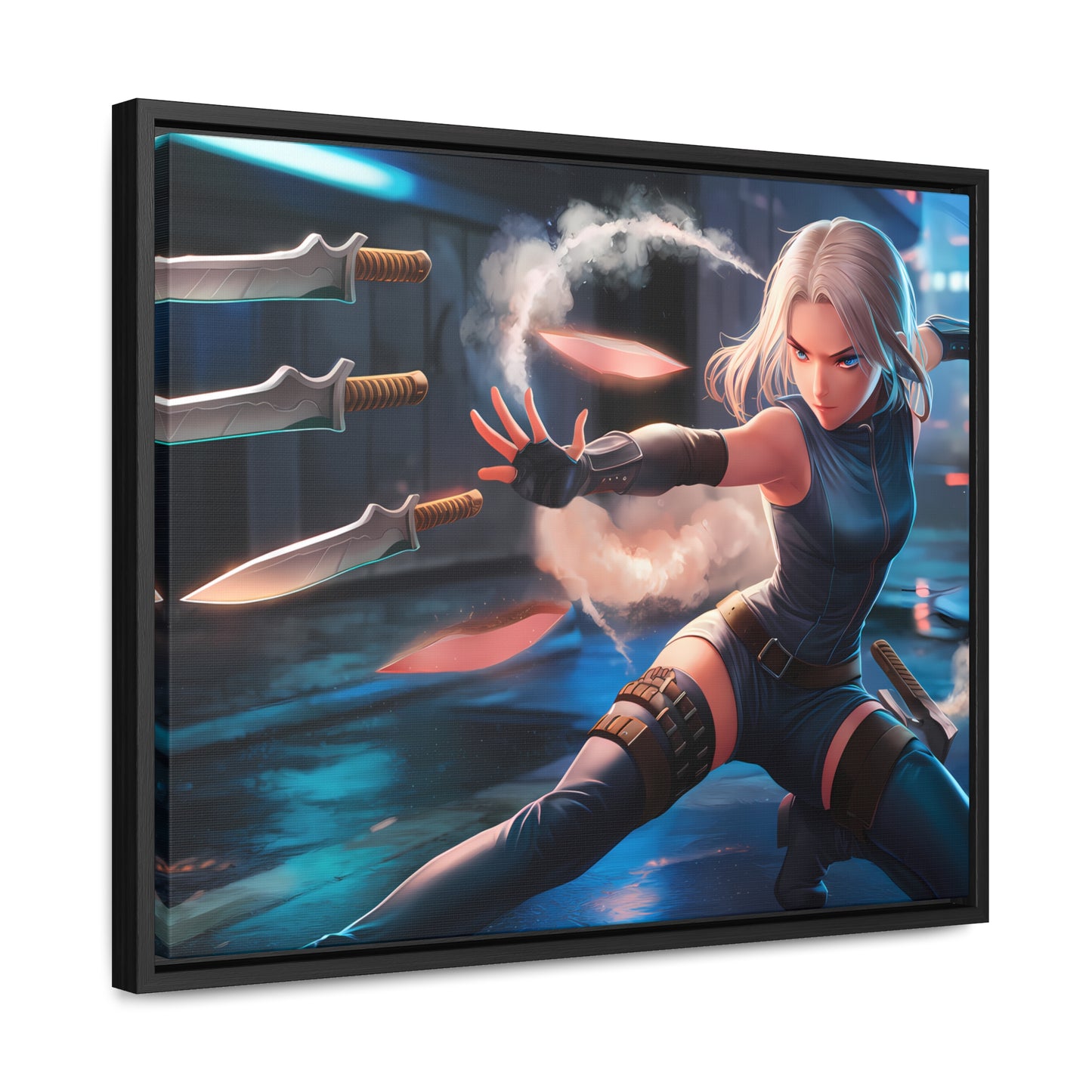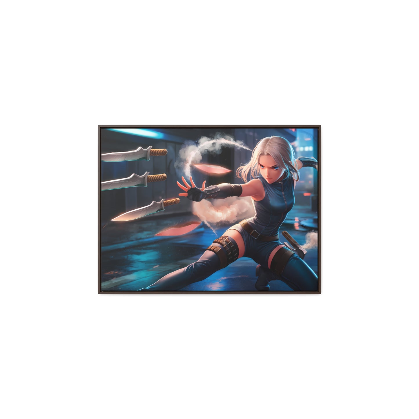 Blade Dancer in the Neon Shadows - Gallery Canvas Wraps, Horizontal Frame