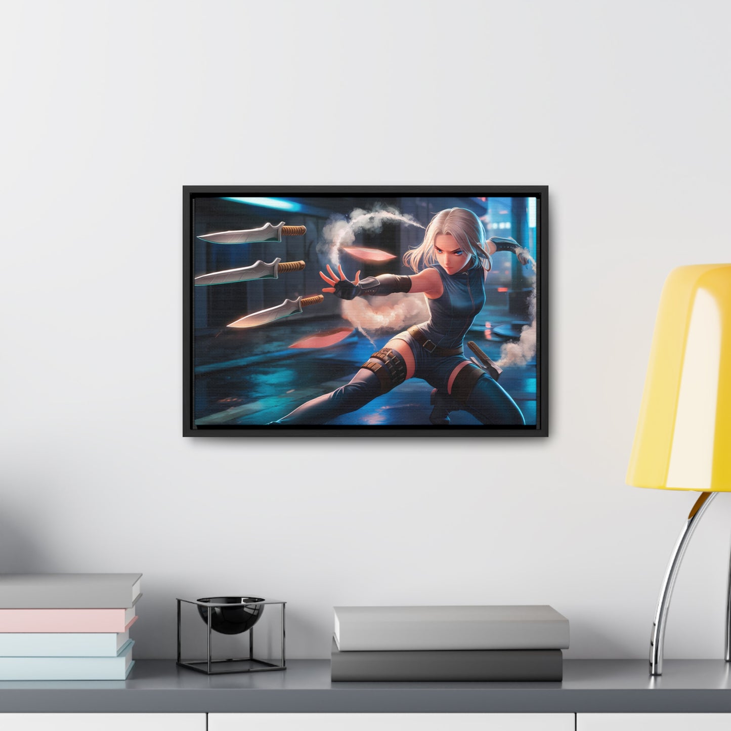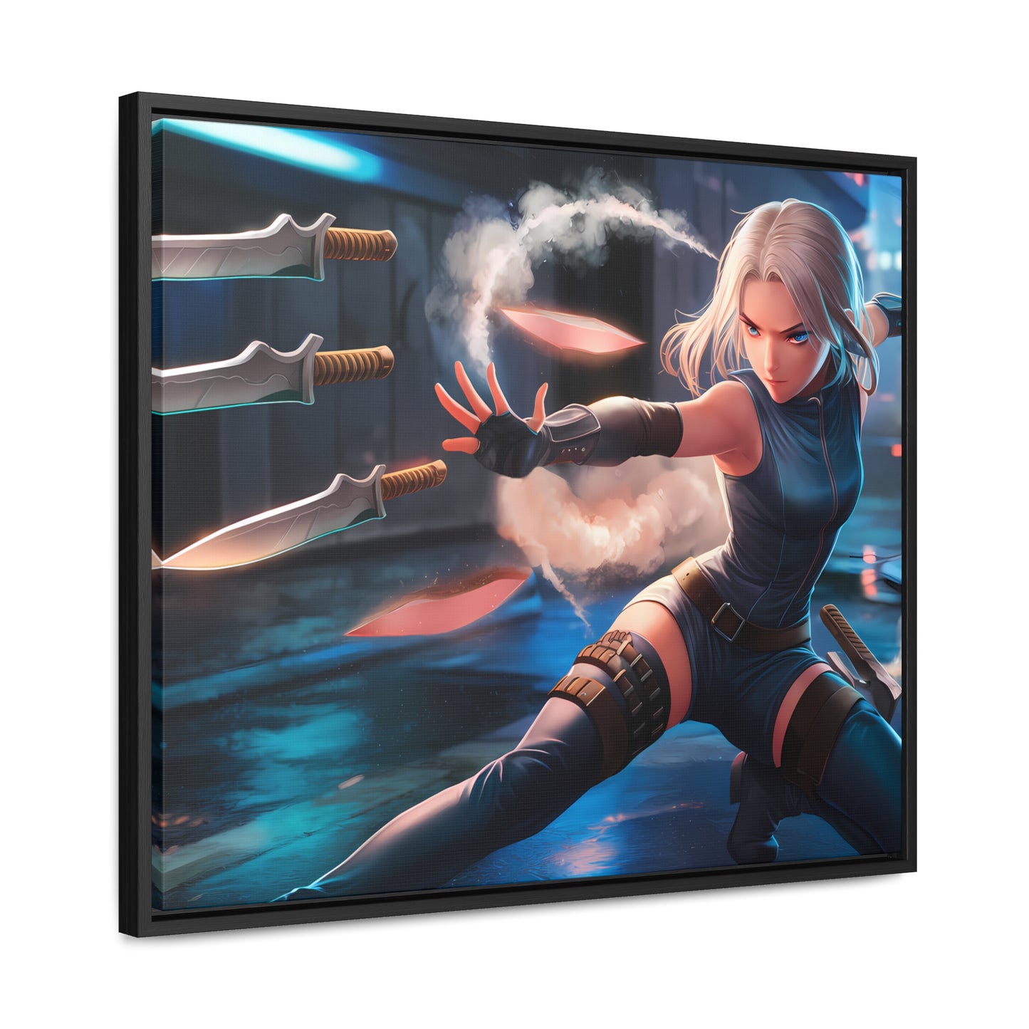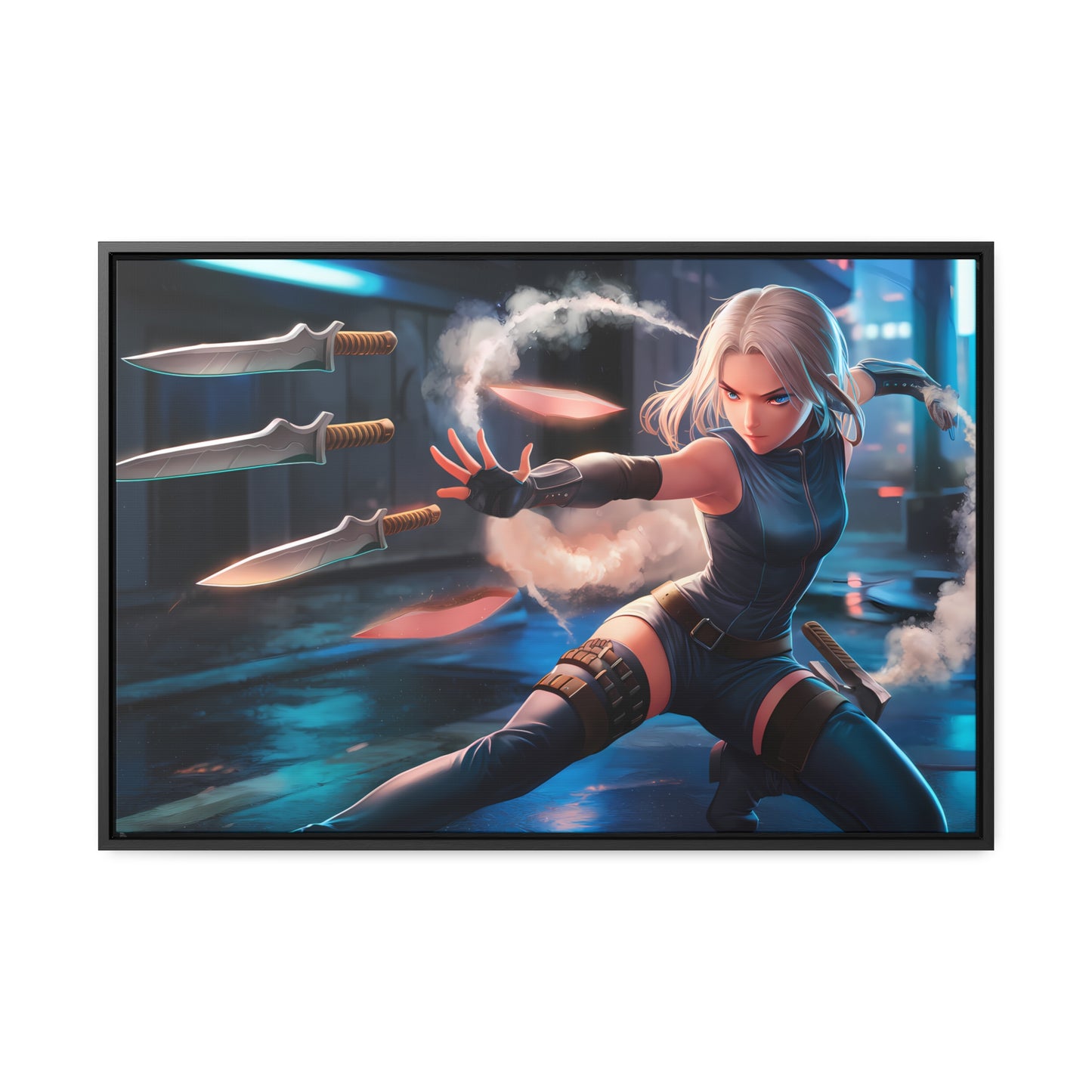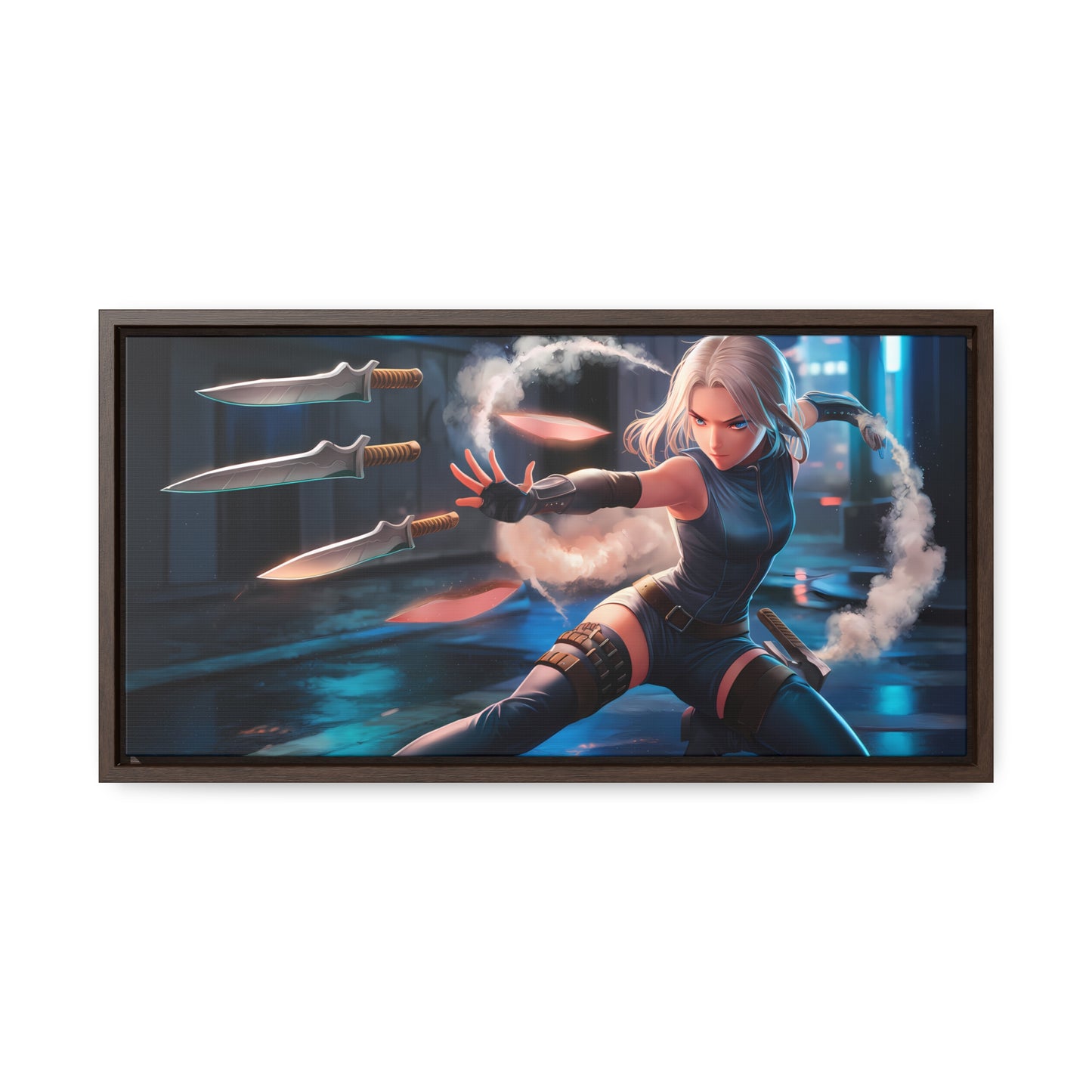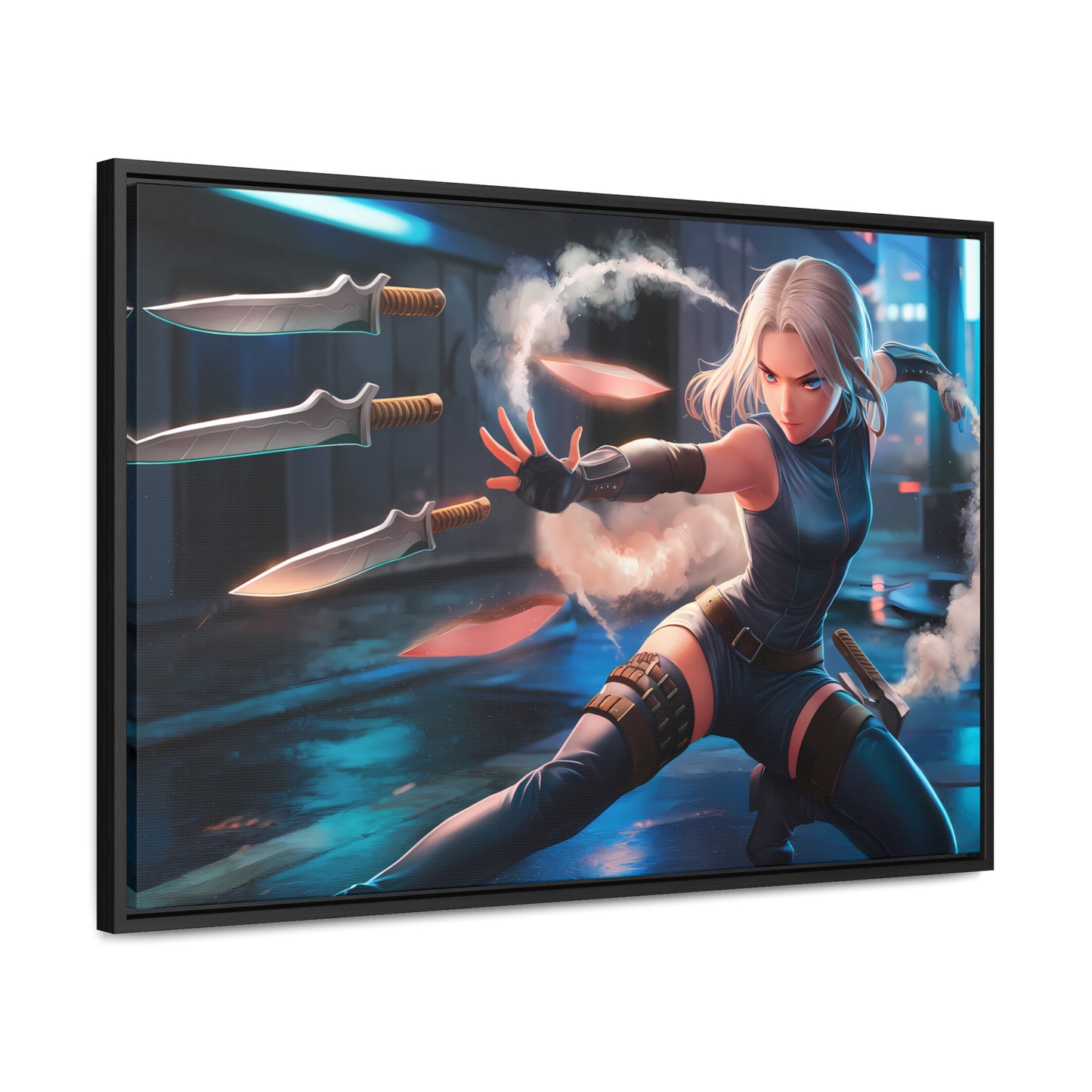 Blade Dancer in the Neon Shadows - Gallery Canvas Wraps, Horizontal Frame