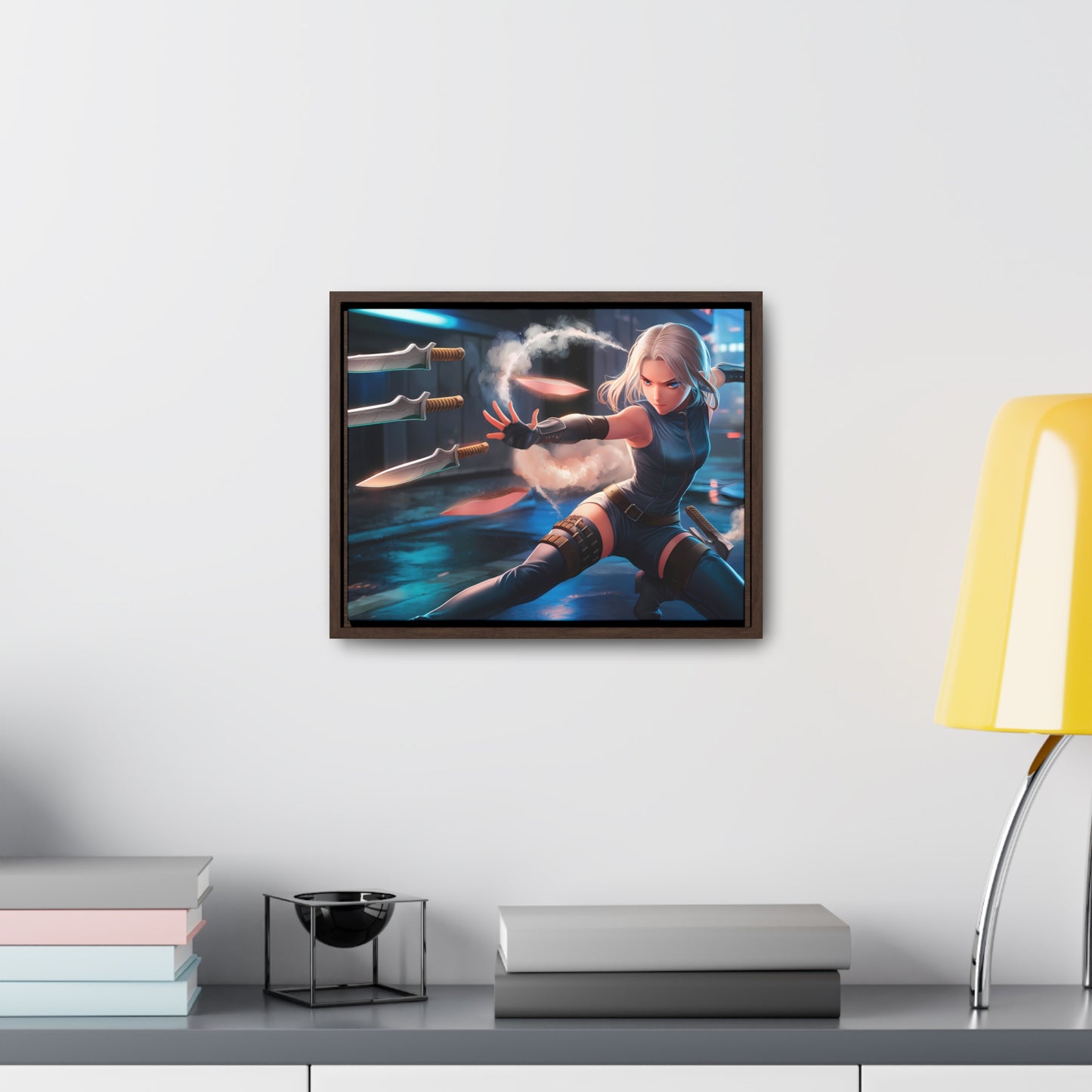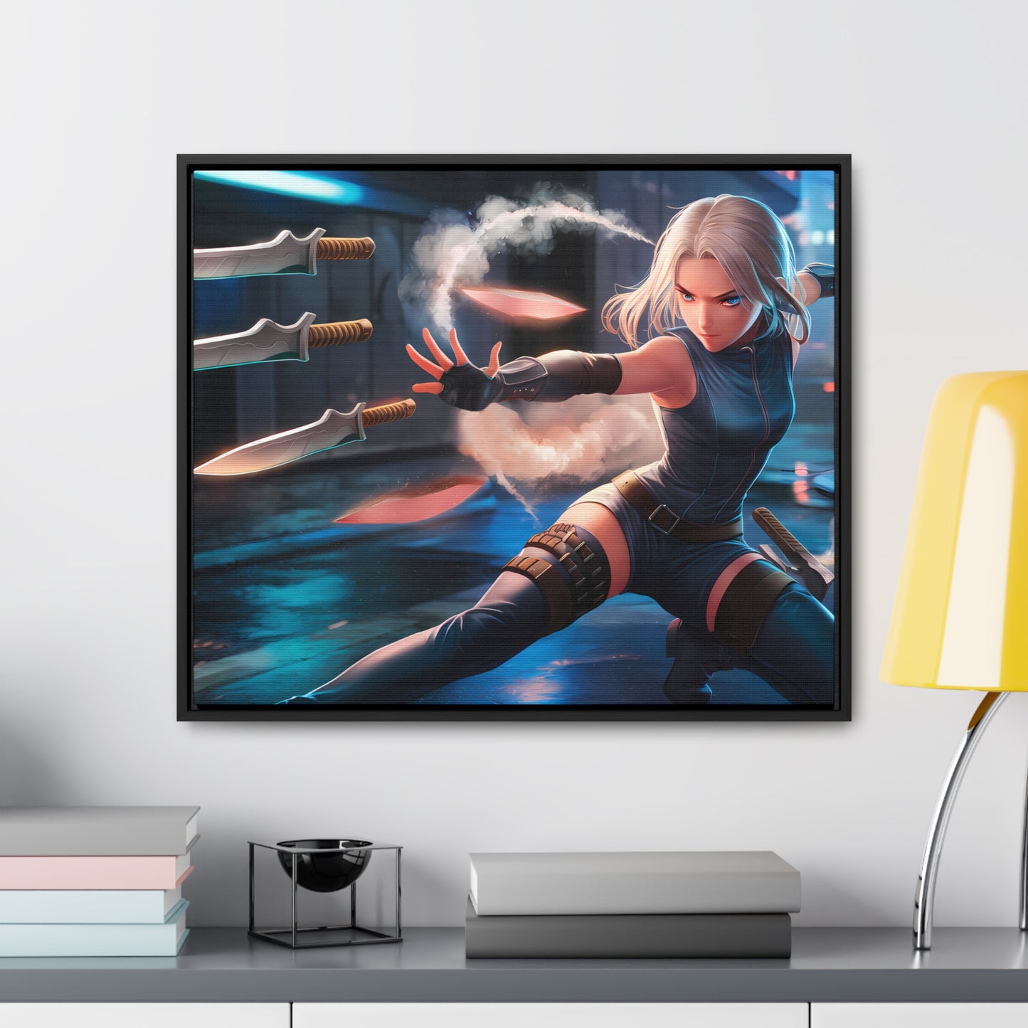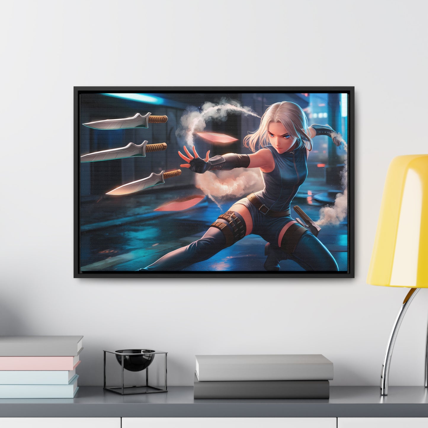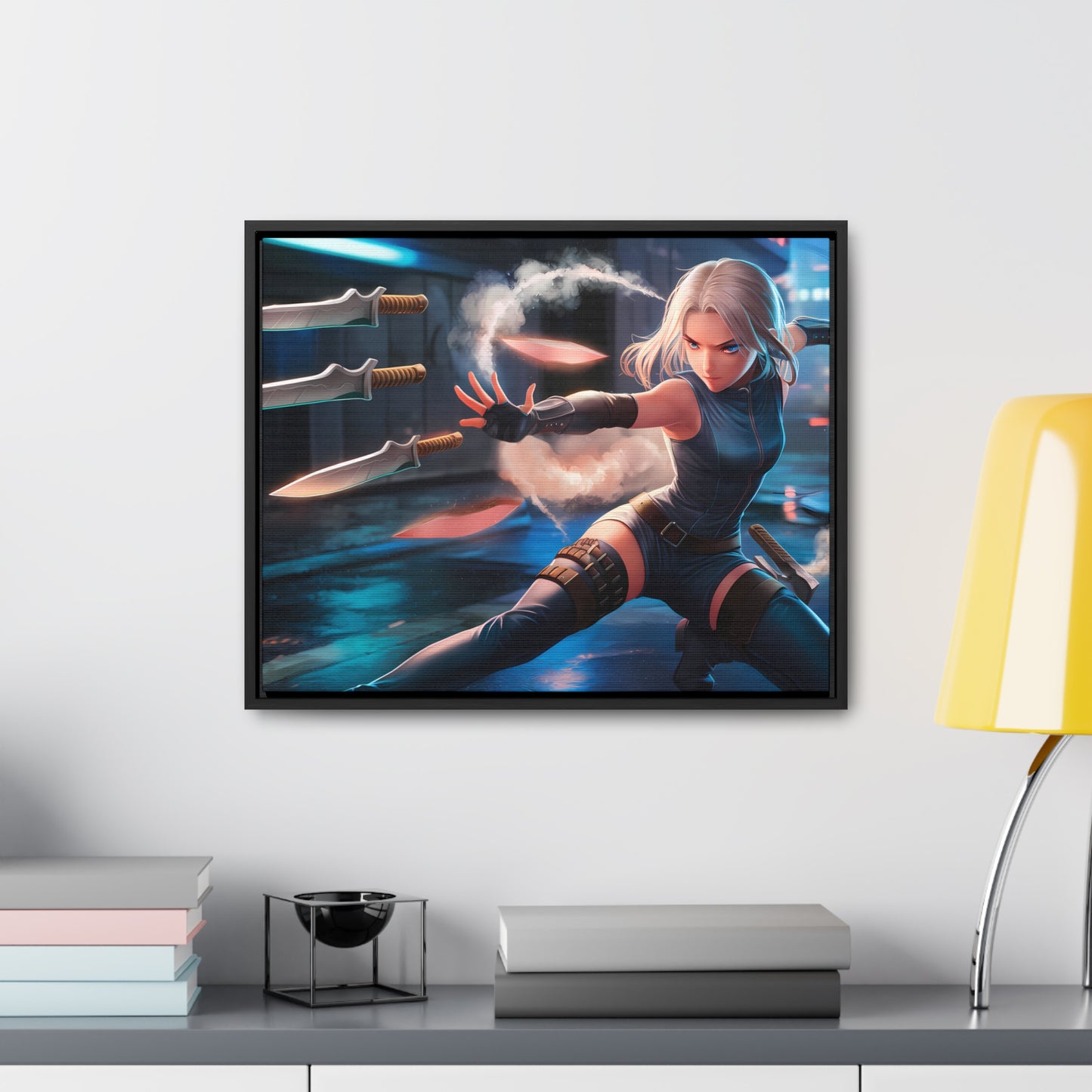 Blade Dancer in the Neon Shadows - Gallery Canvas Wraps, Horizontal Frame
