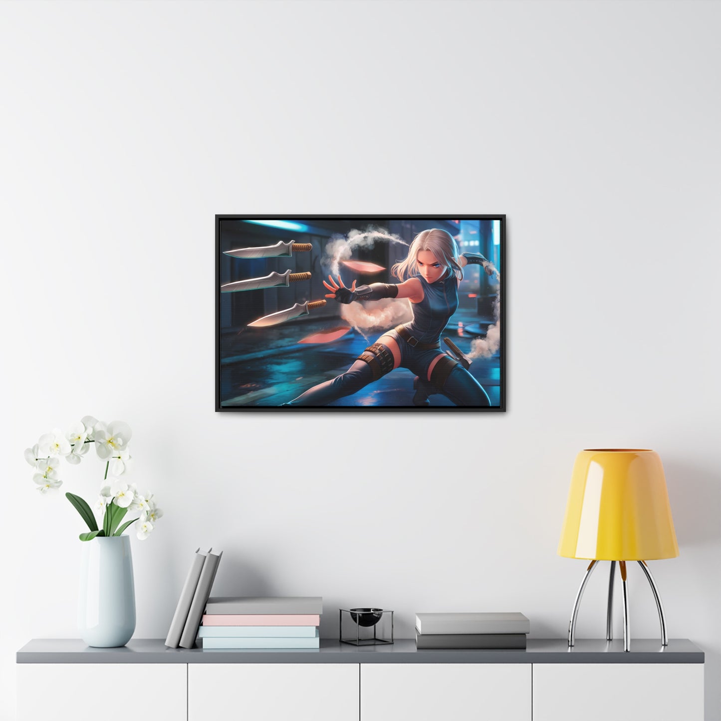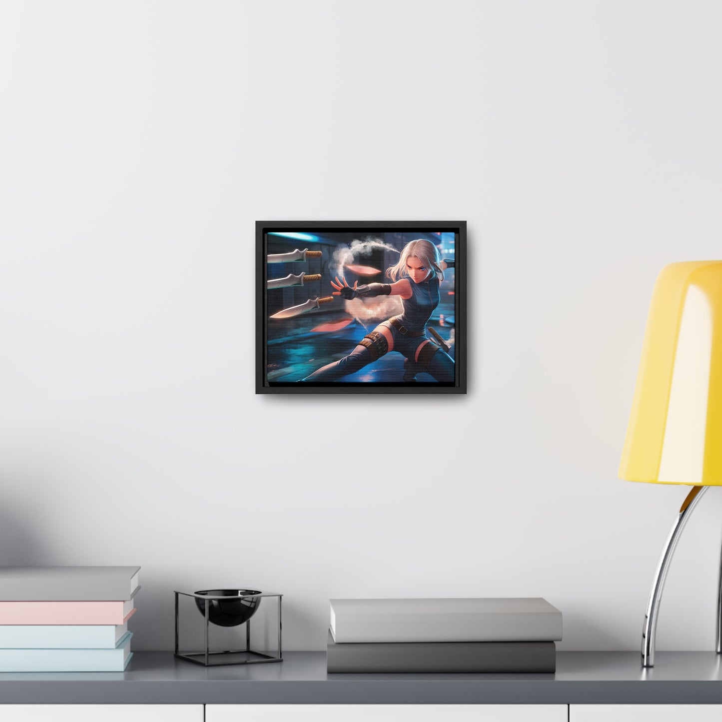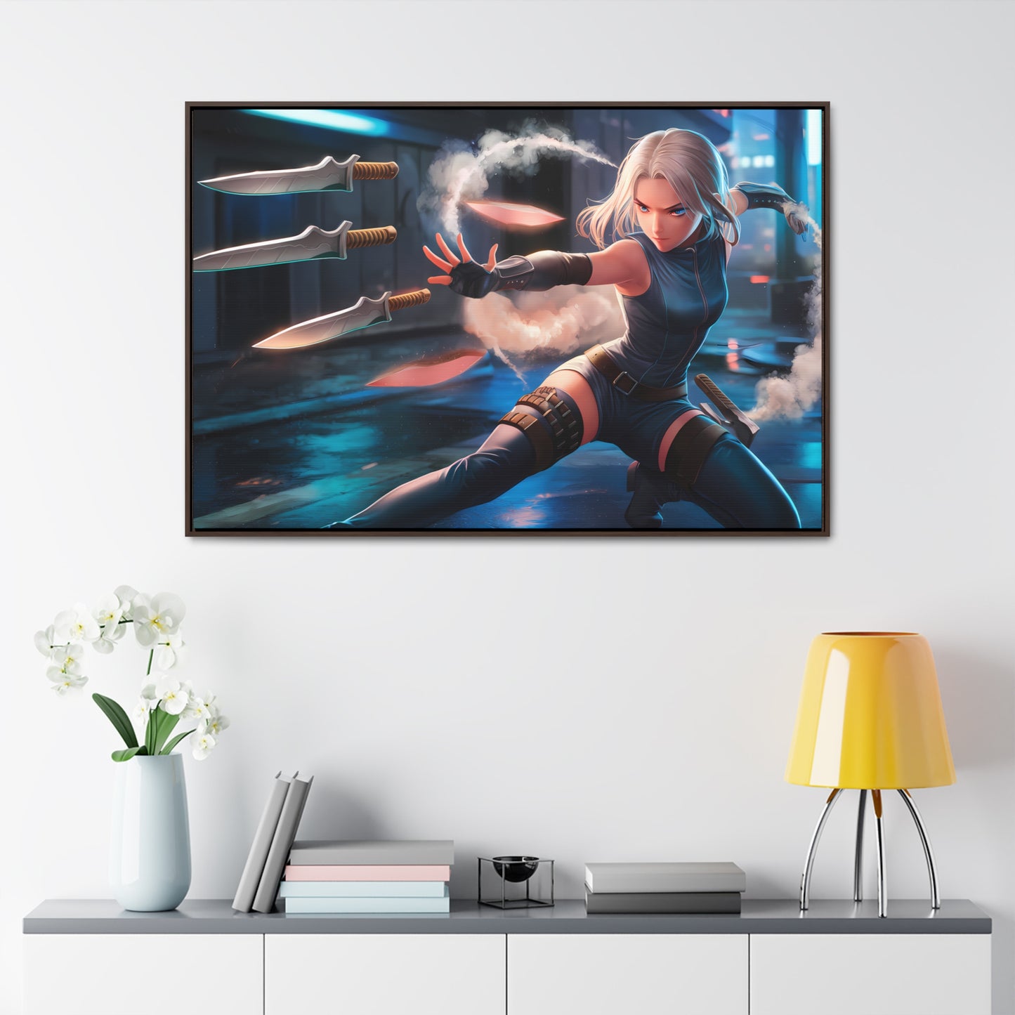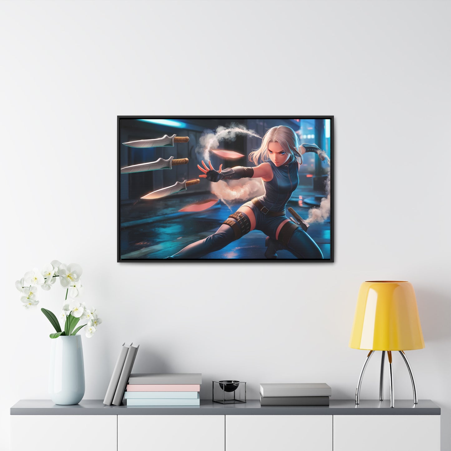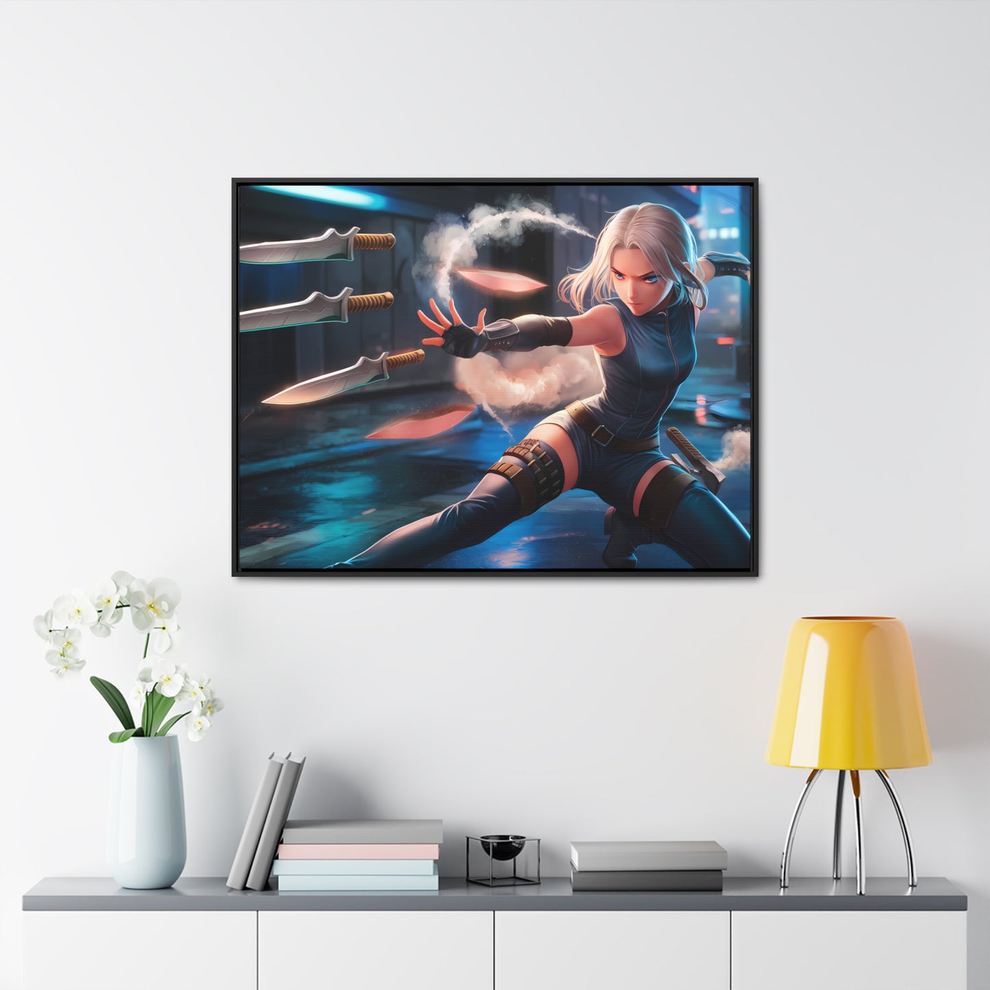 Blade Dancer in the Neon Shadows - Gallery Canvas Wraps, Horizontal Frame