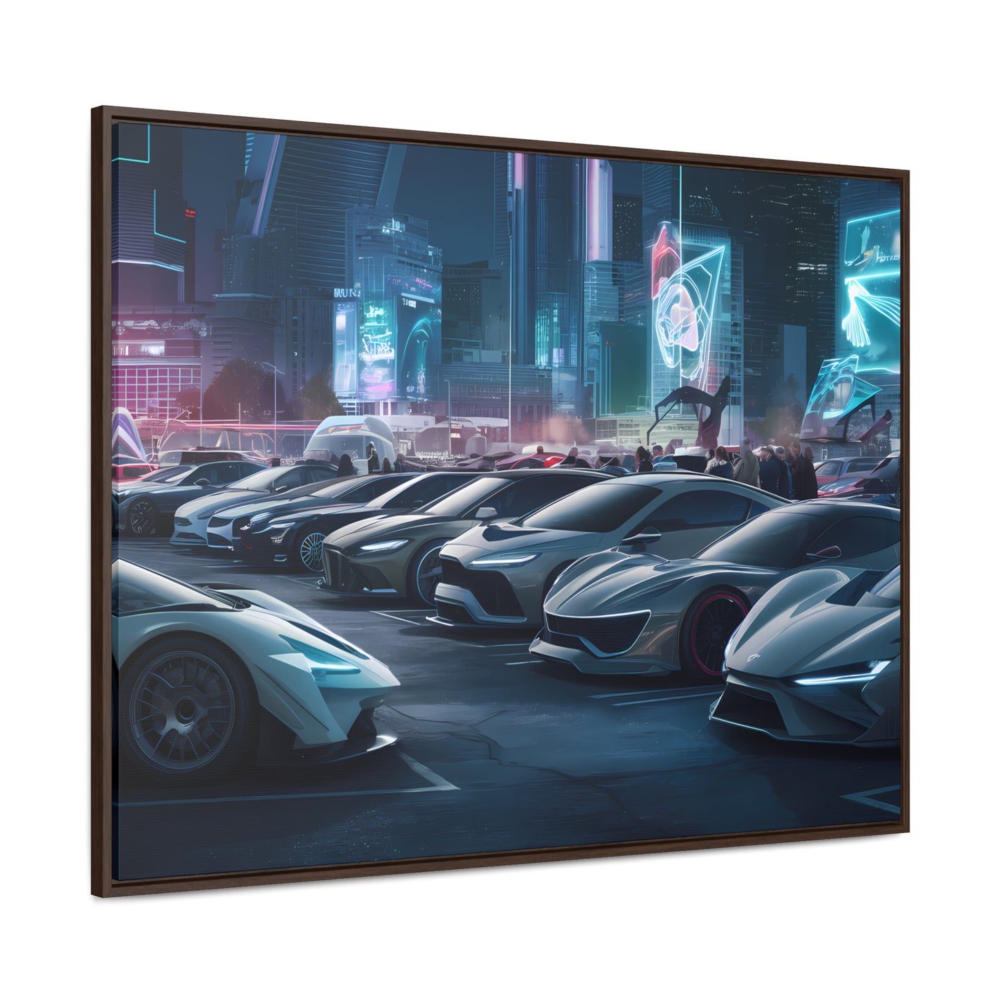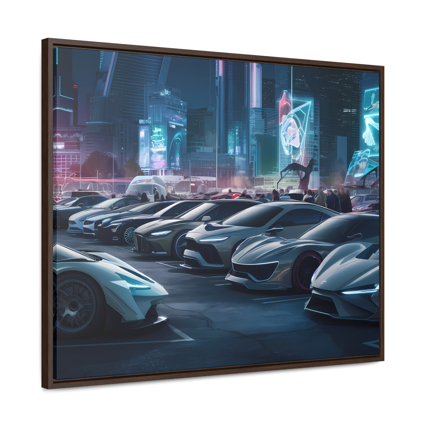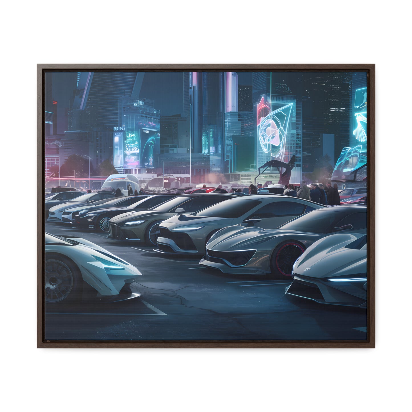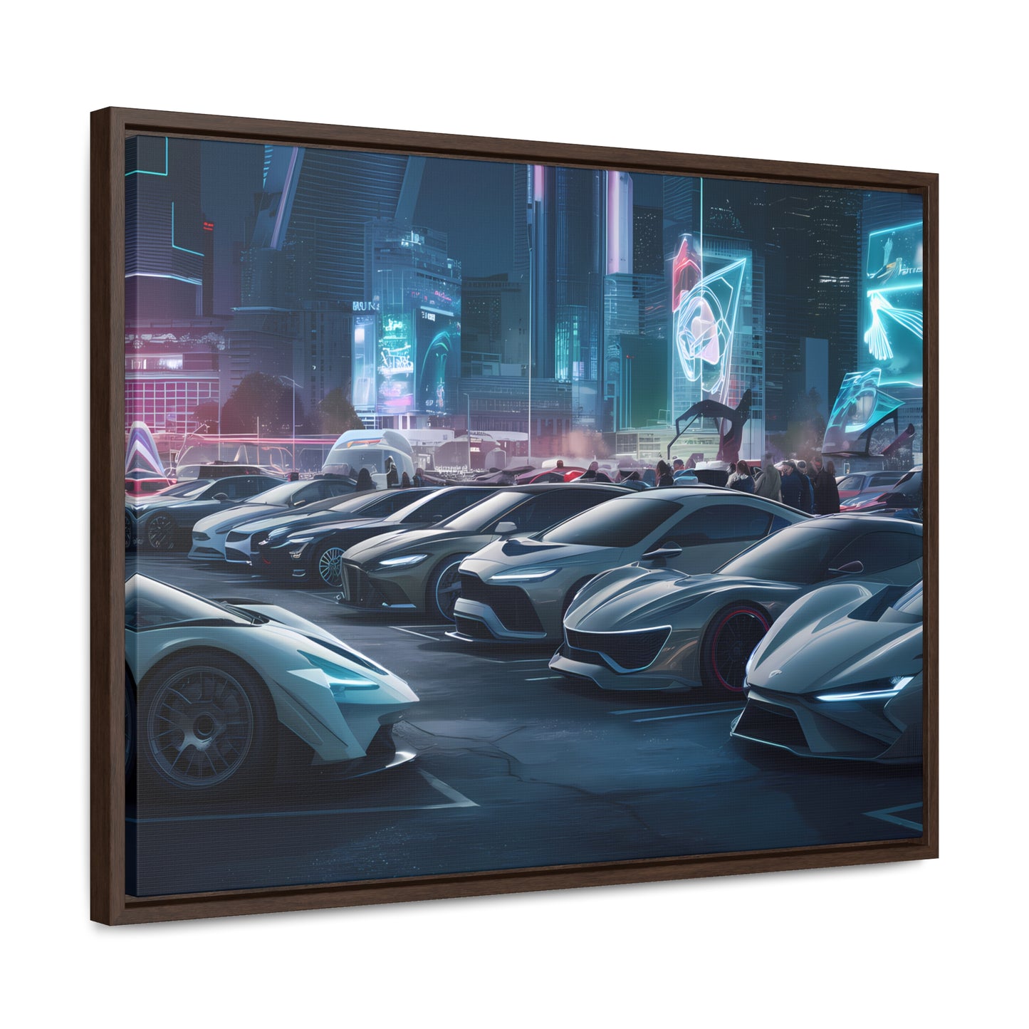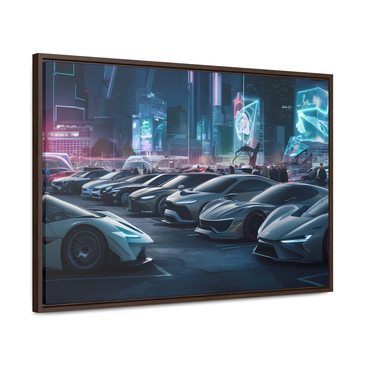 "Midnight Car Meet in Neon City" - Gallery Canvas Wraps, Horizontal Frame
