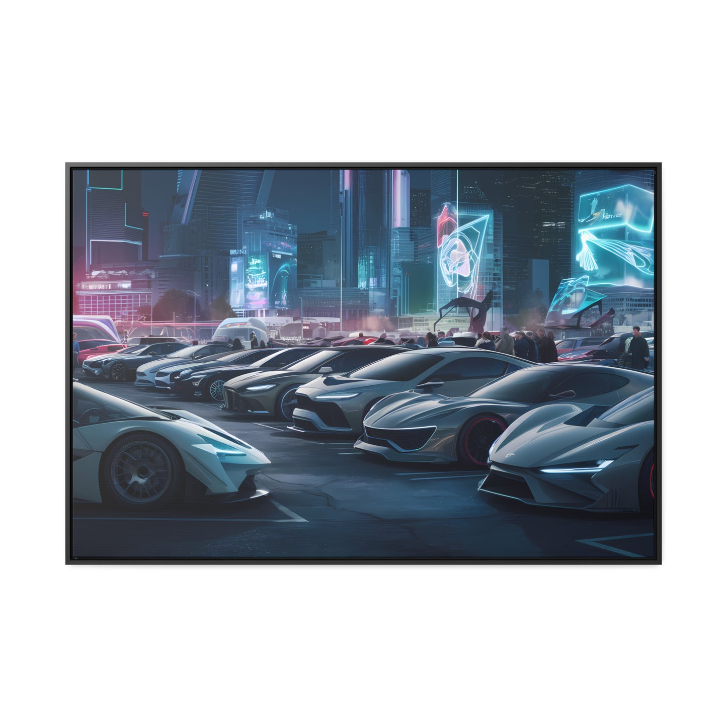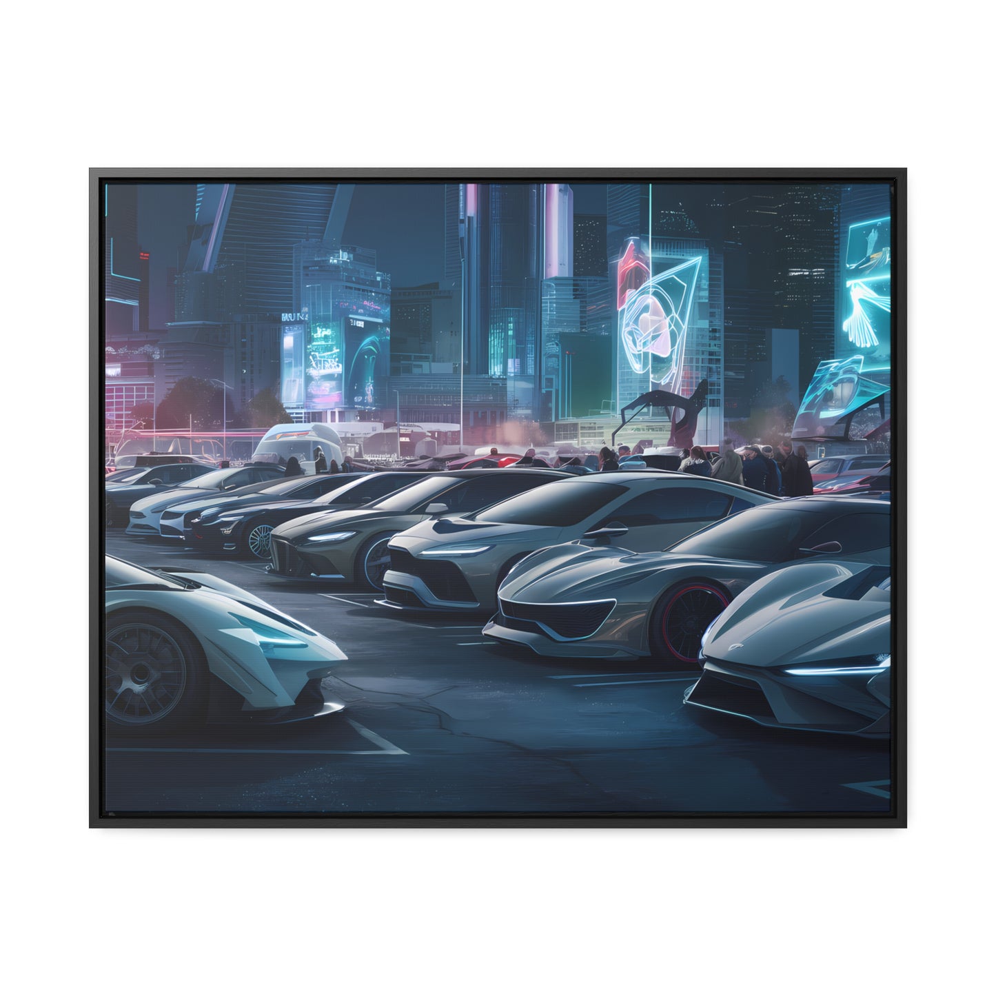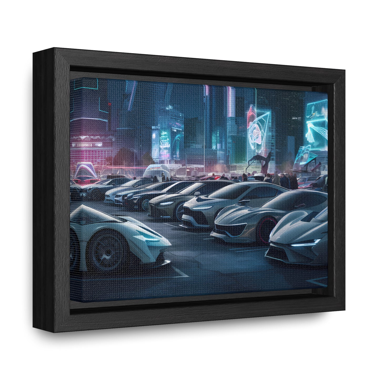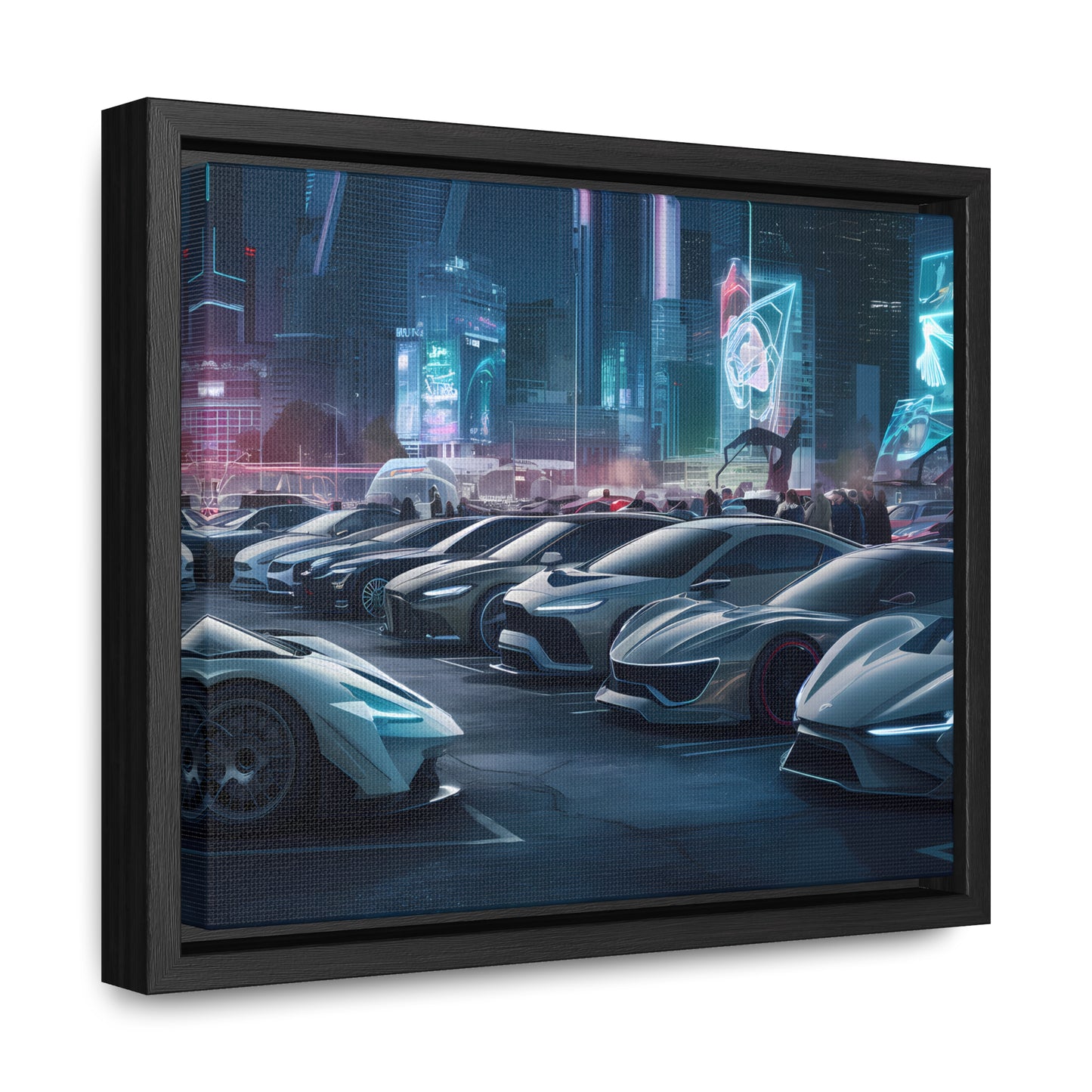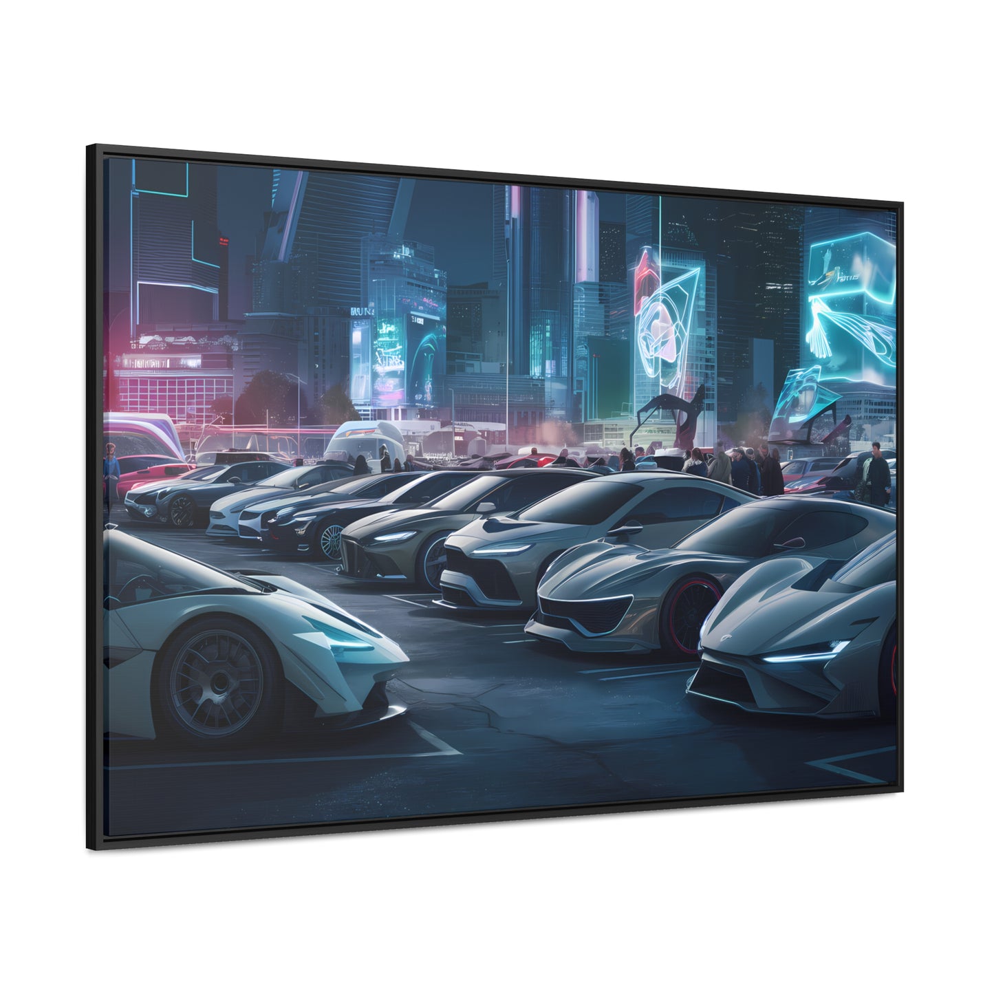 "Midnight Car Meet in Neon City" - Gallery Canvas Wraps, Horizontal Frame