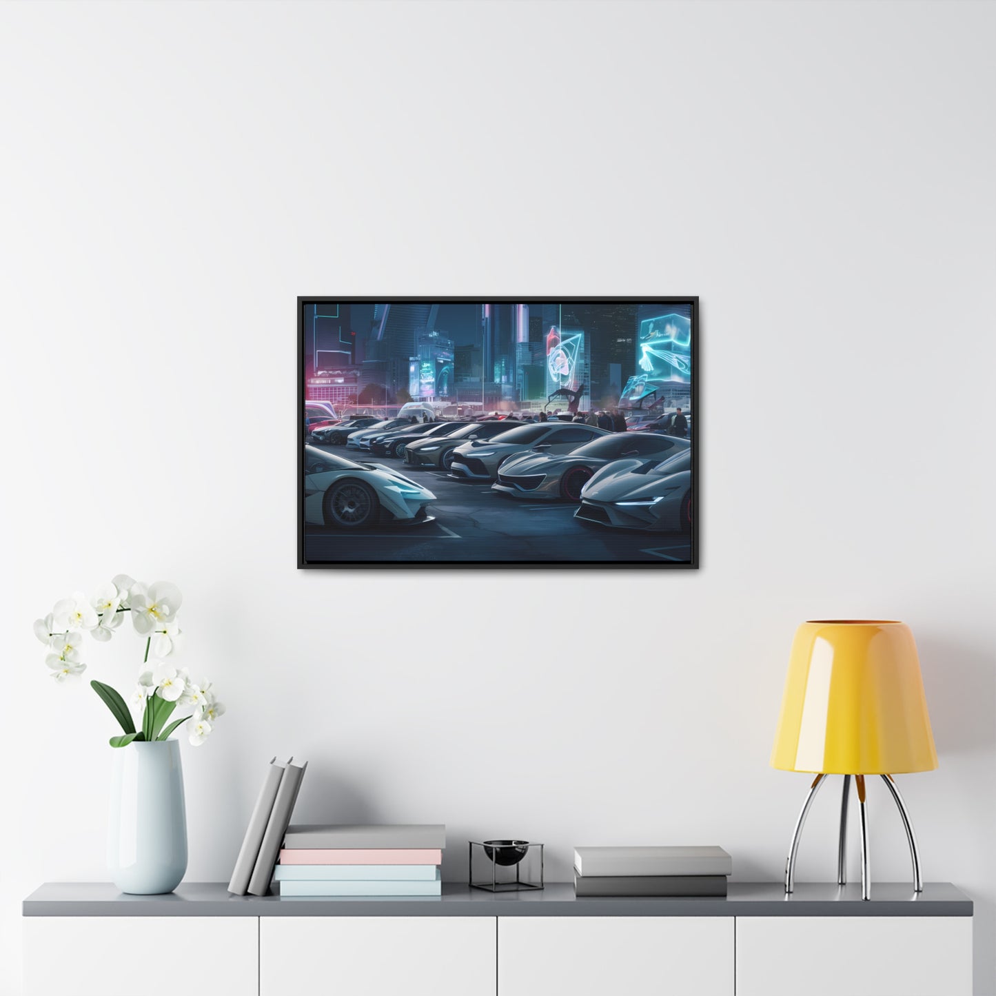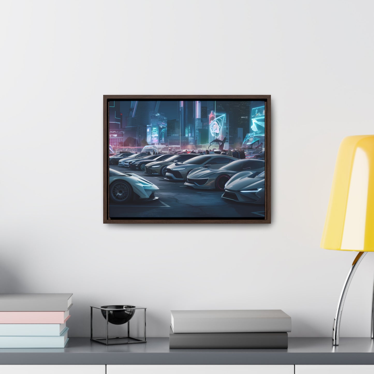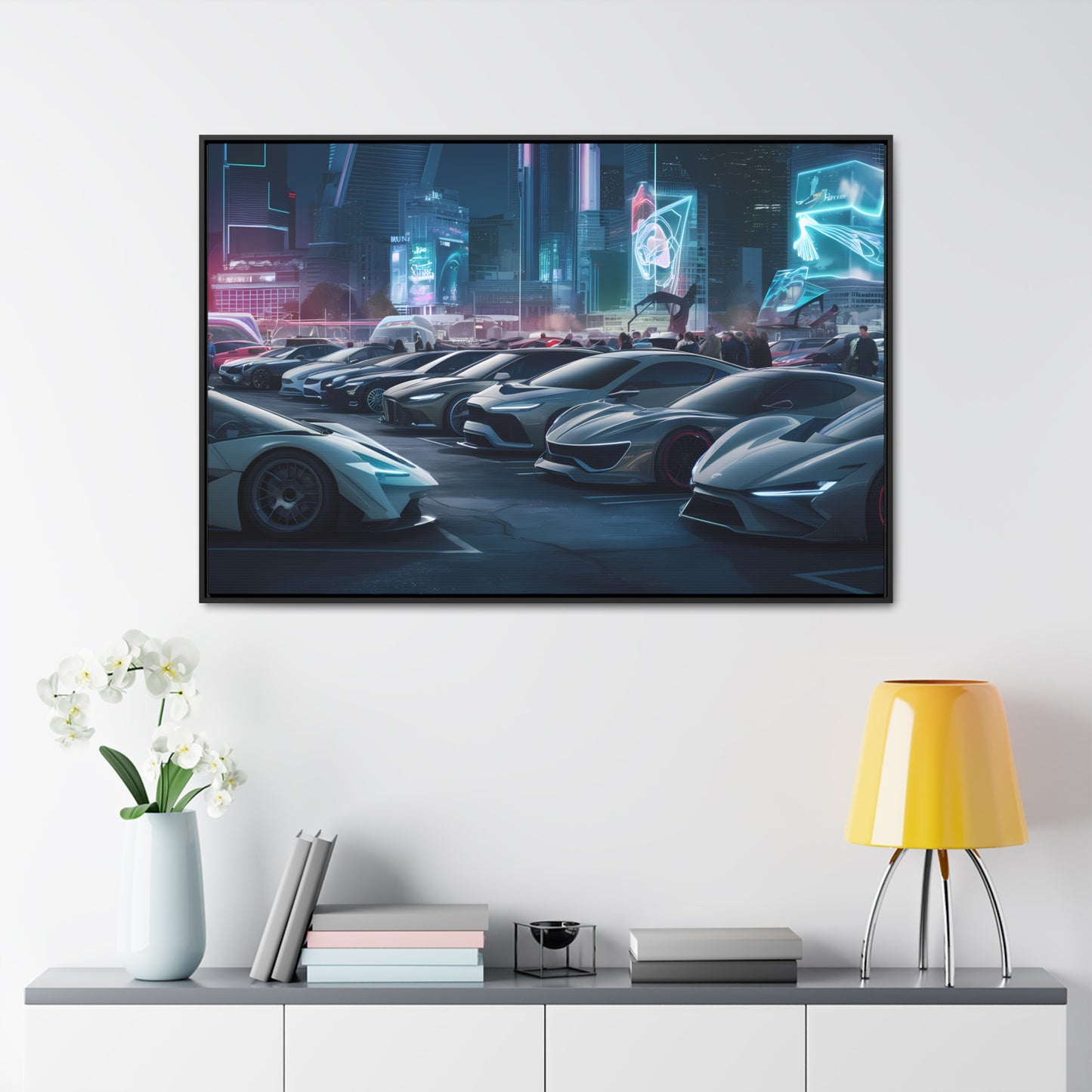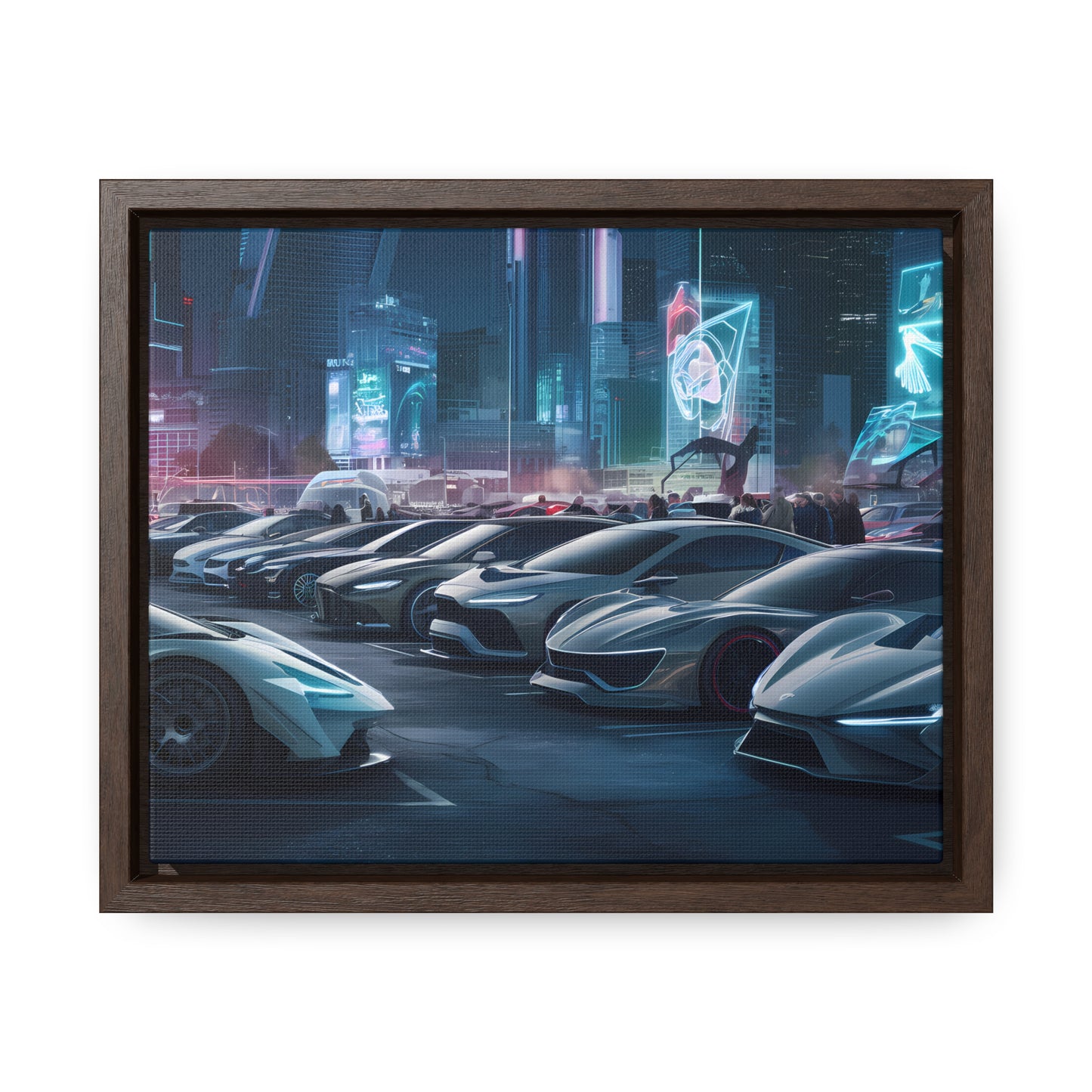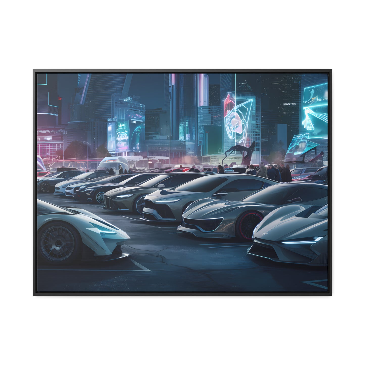 "Midnight Car Meet in Neon City" - Gallery Canvas Wraps, Horizontal Frame