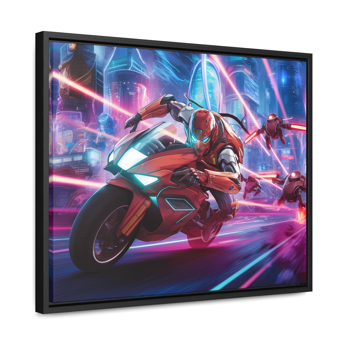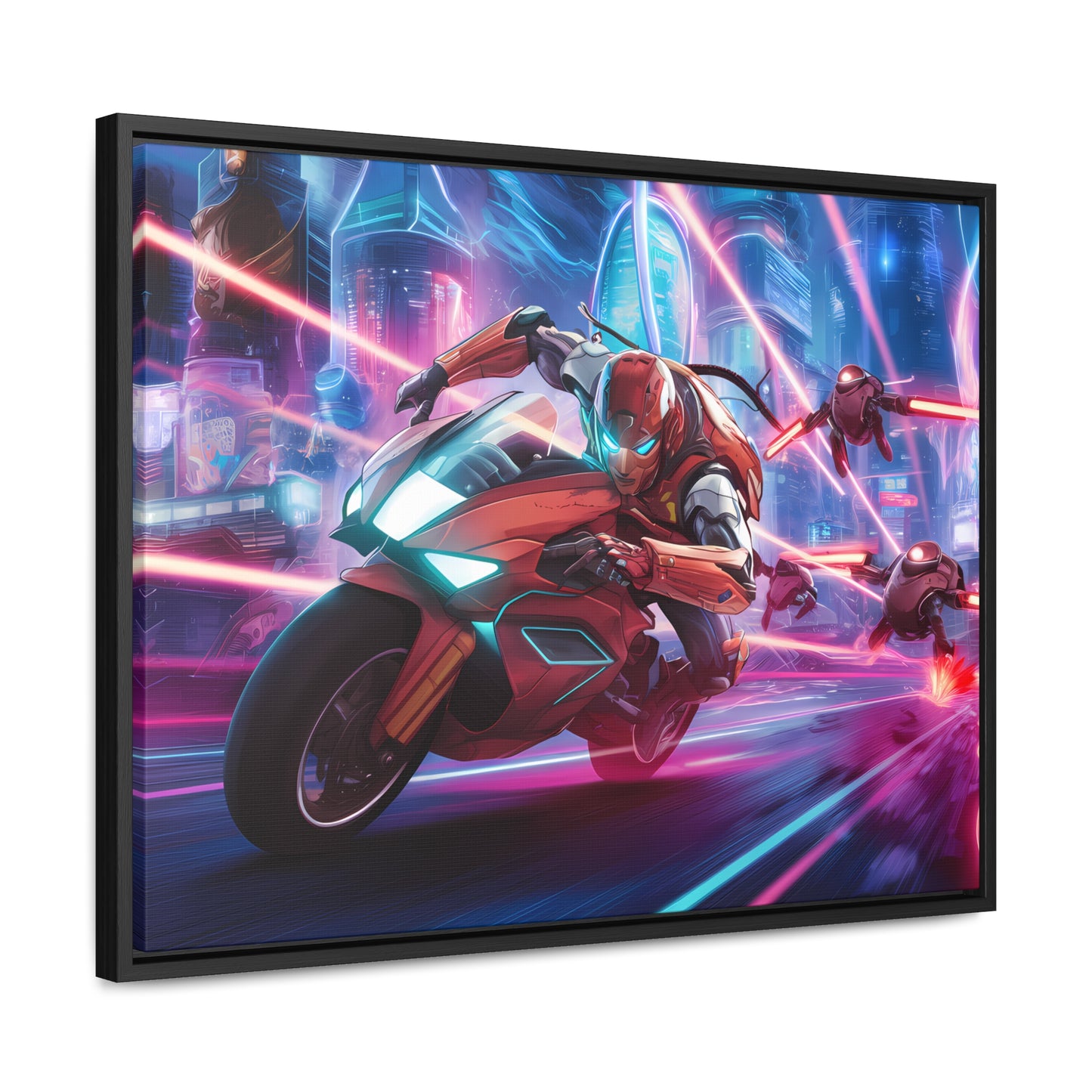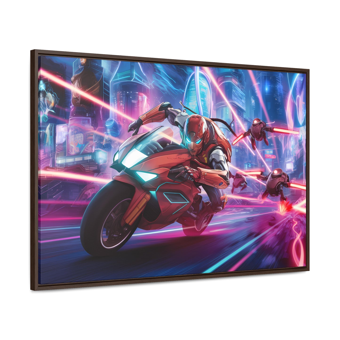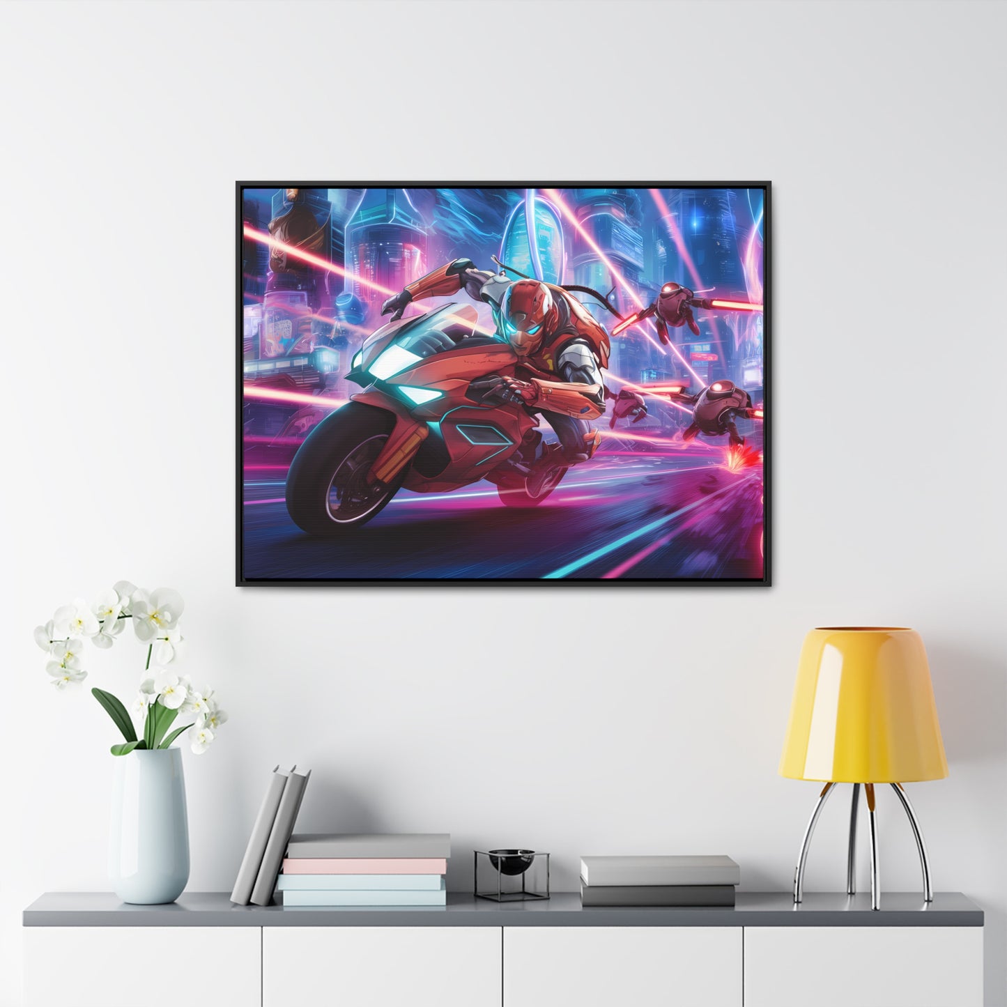 Neon Pursuit: Cyberbike Showdown - Gallery Canvas Wraps, Horizontal Frame