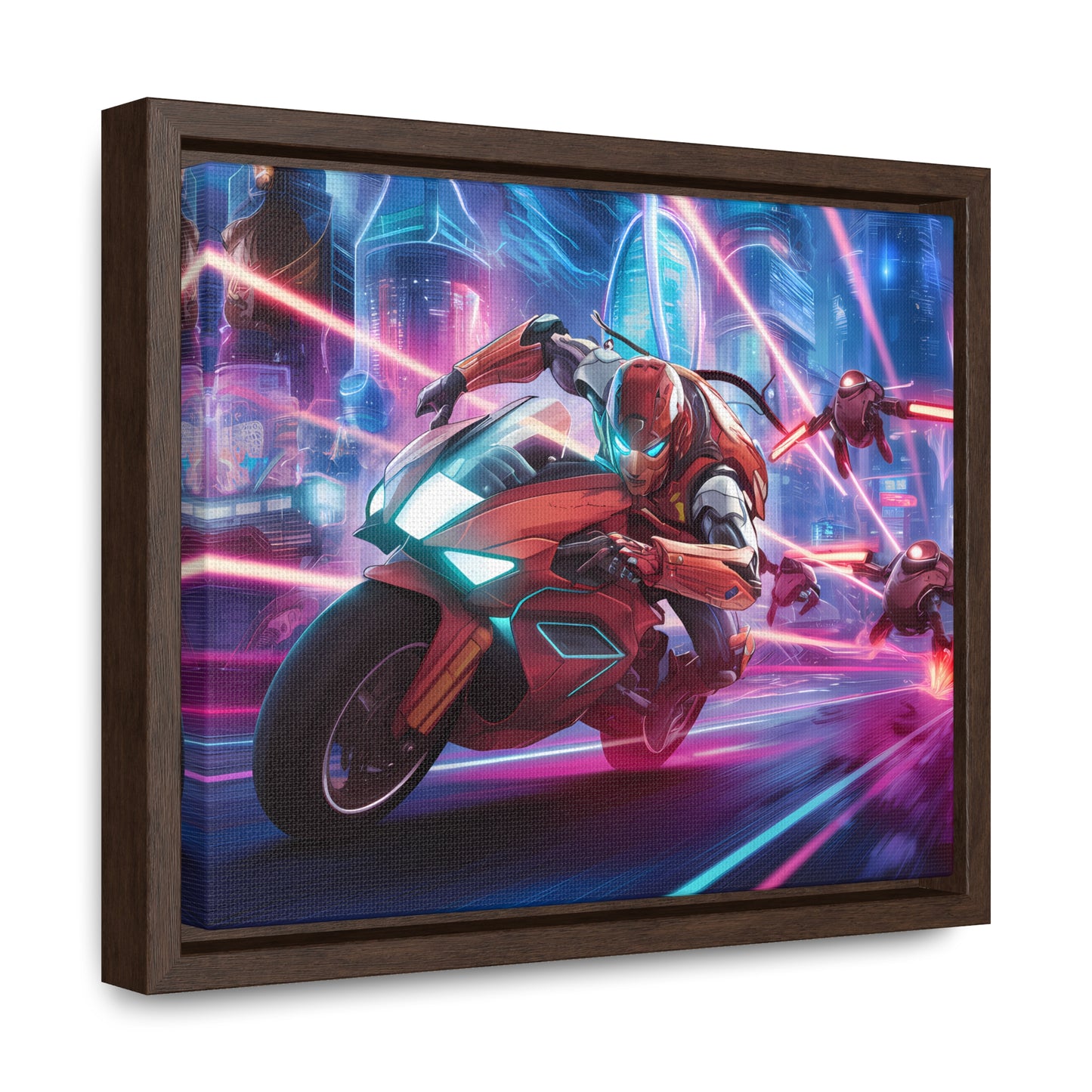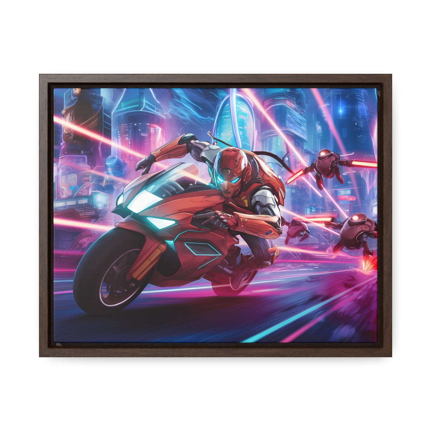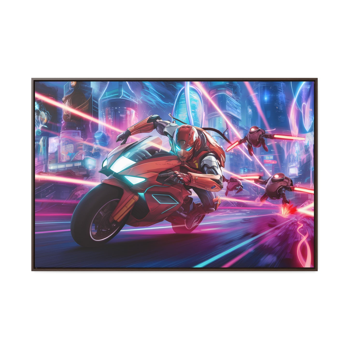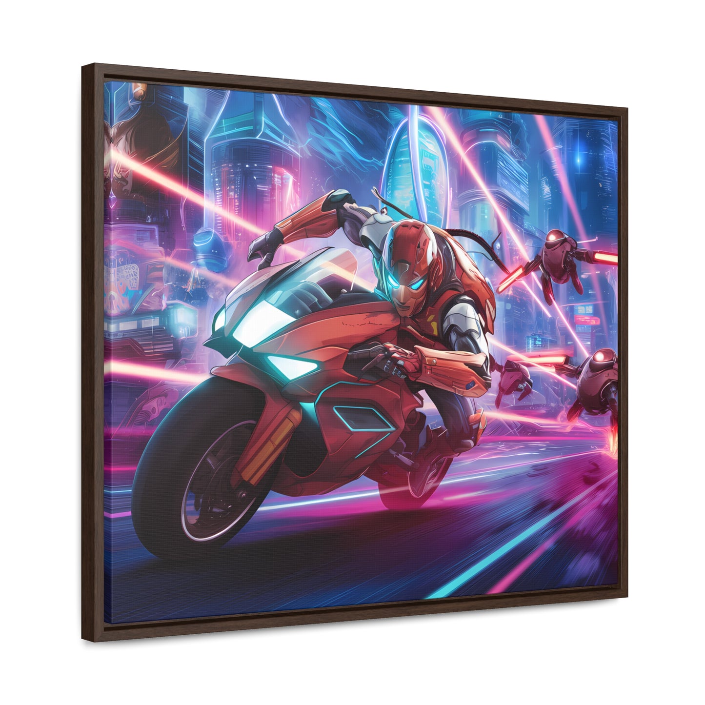 Neon Pursuit: Cyberbike Showdown - Gallery Canvas Wraps, Horizontal Frame