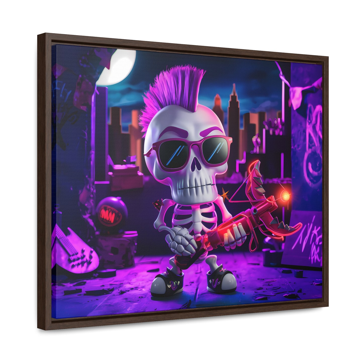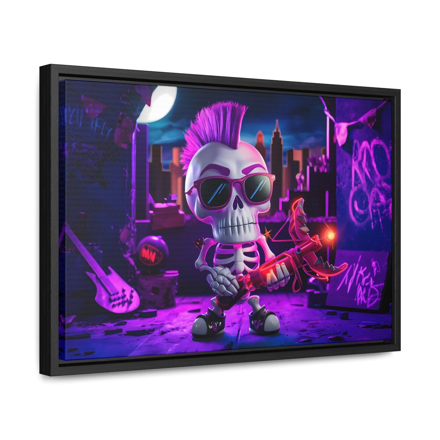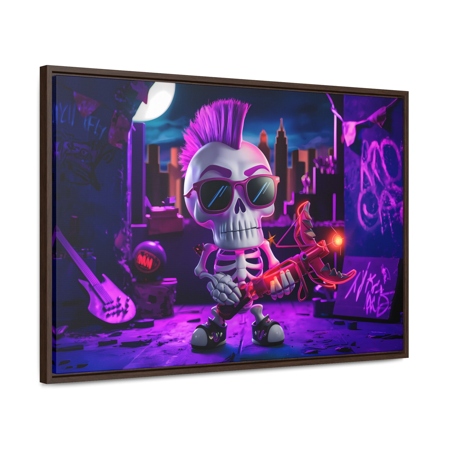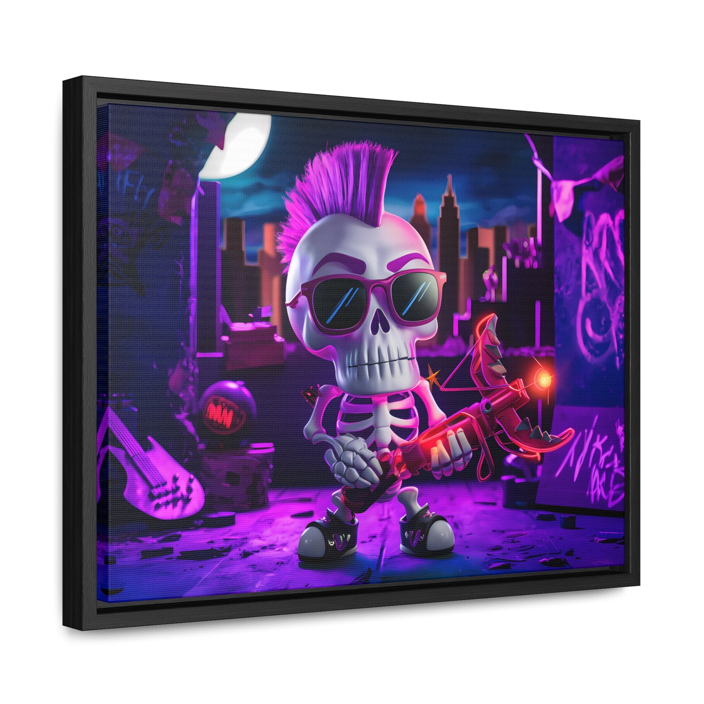 "Punk Rock Skeleton Warrior in Neon City" - Gallery Canvas Wraps, Horizontal Frame