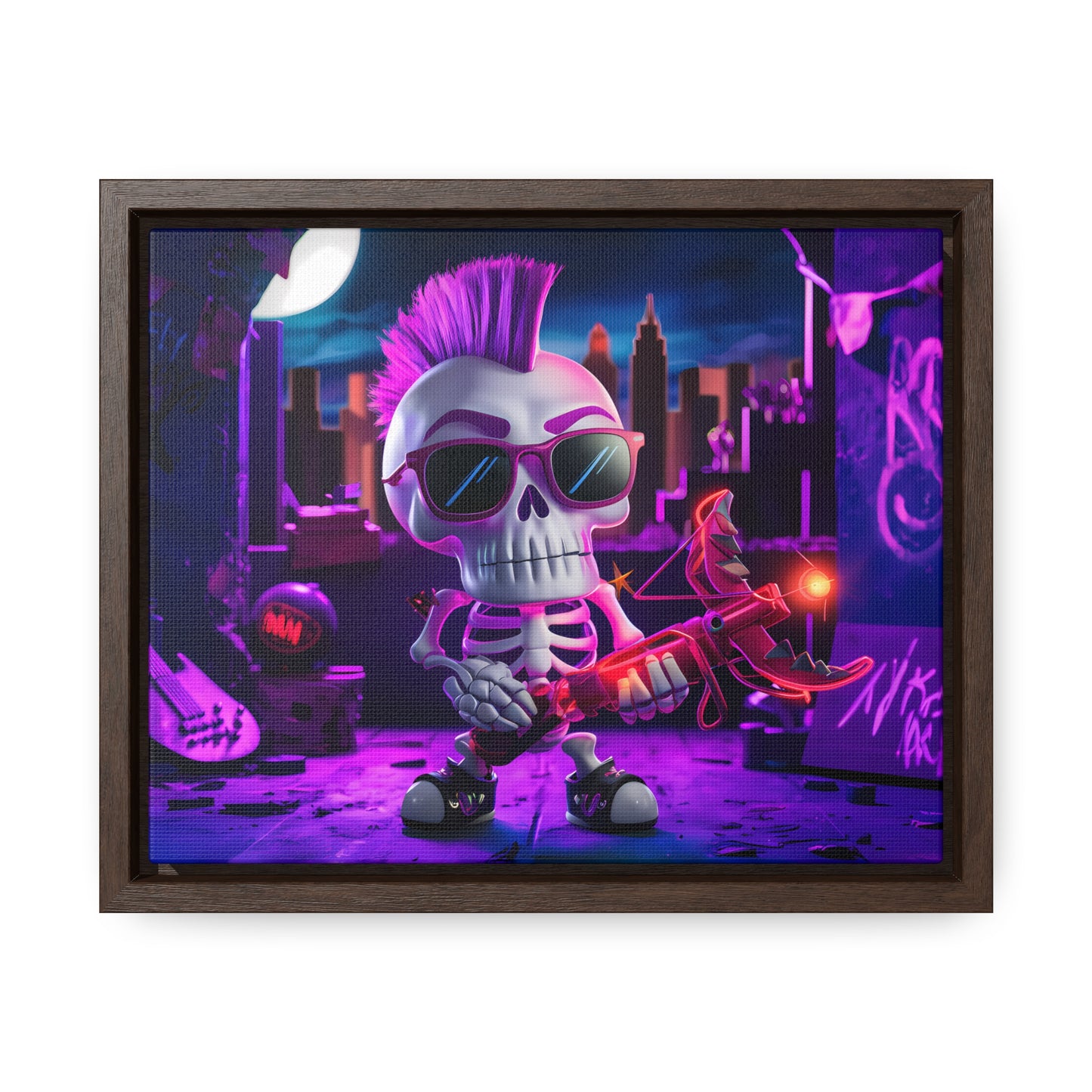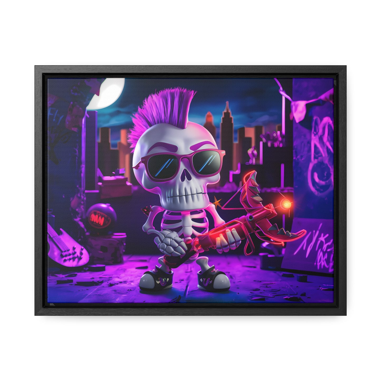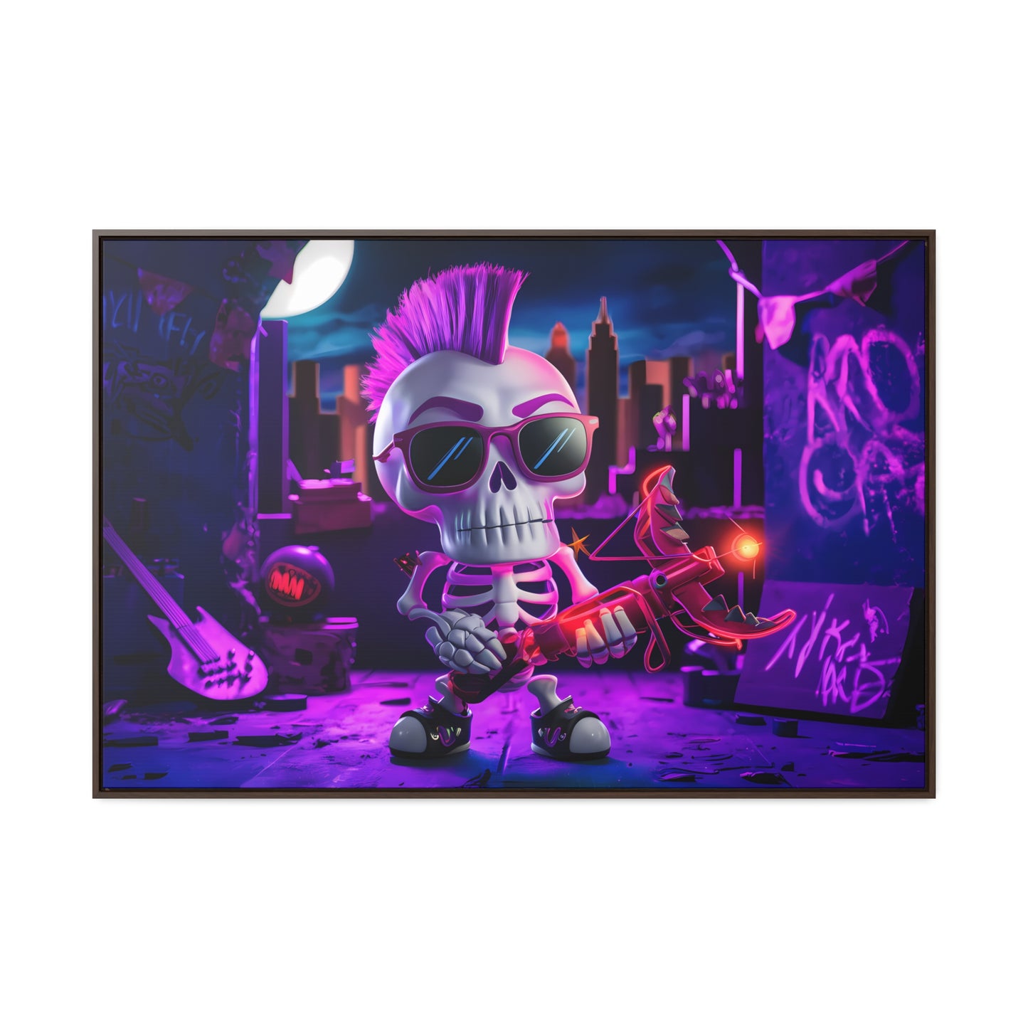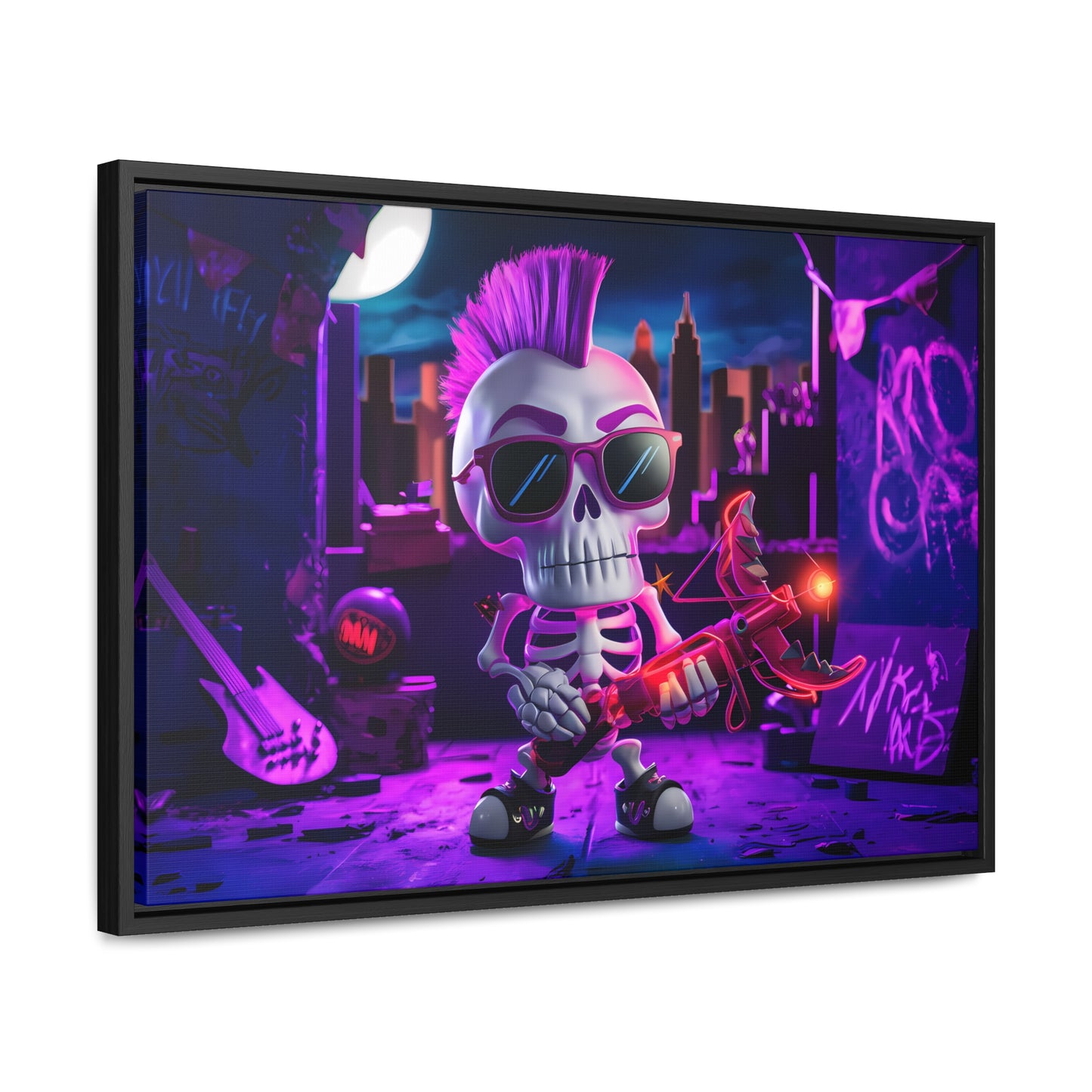 "Punk Rock Skeleton Warrior in Neon City" - Gallery Canvas Wraps, Horizontal Frame