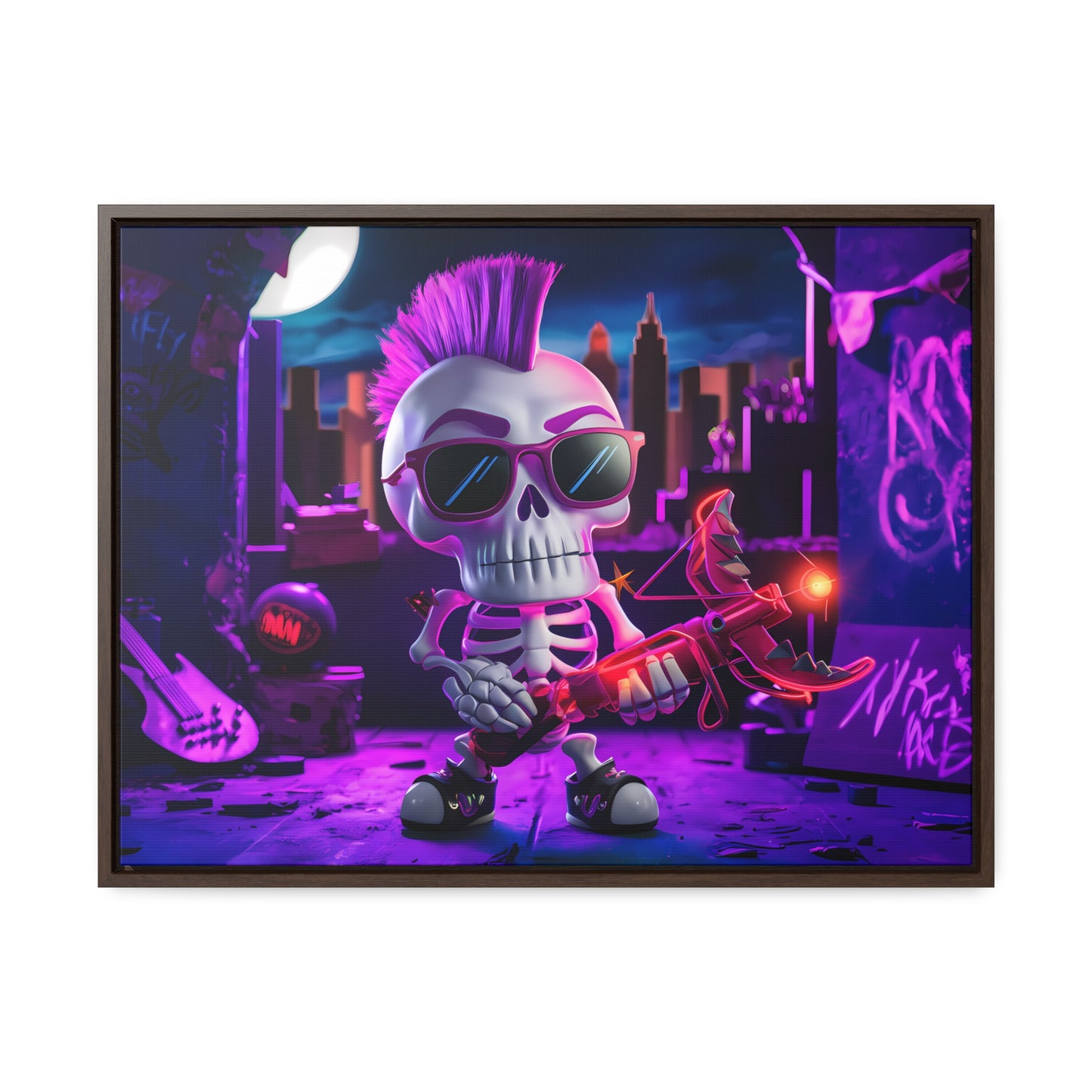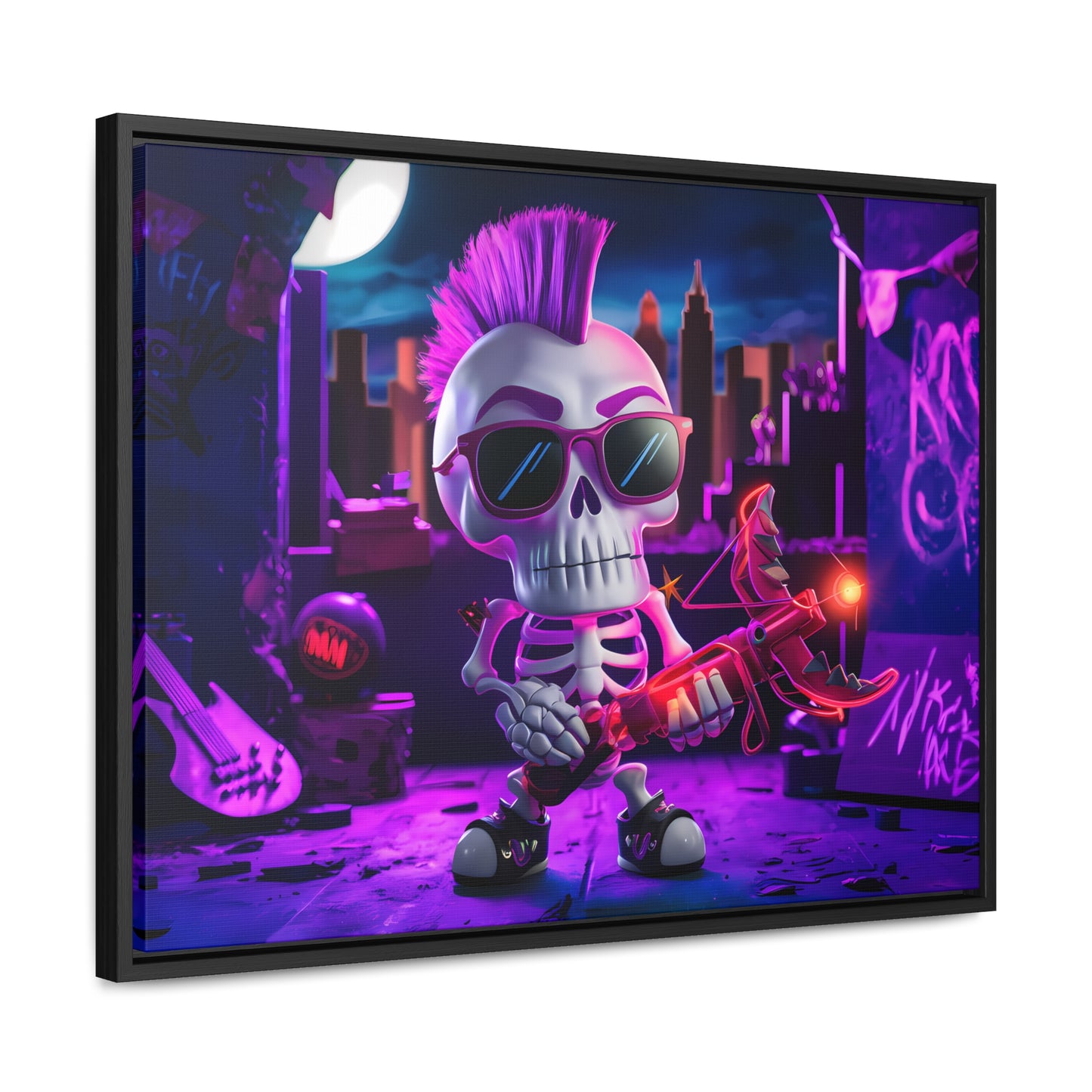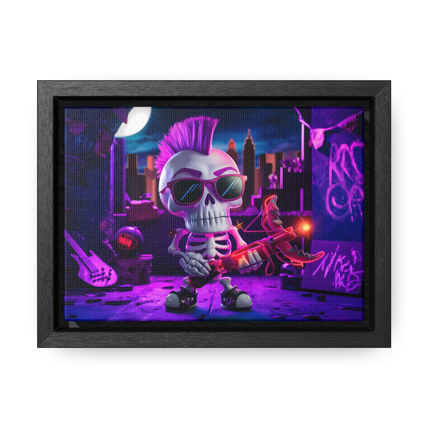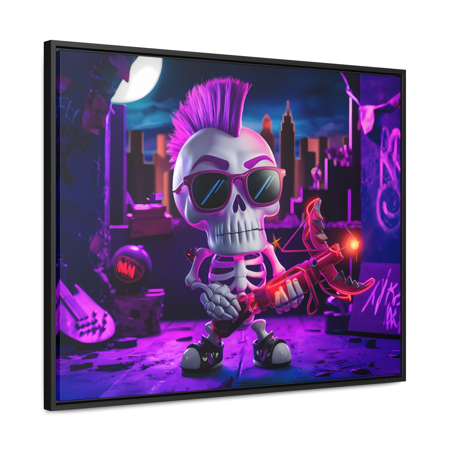 "Punk Rock Skeleton Warrior in Neon City" - Gallery Canvas Wraps, Horizontal Frame