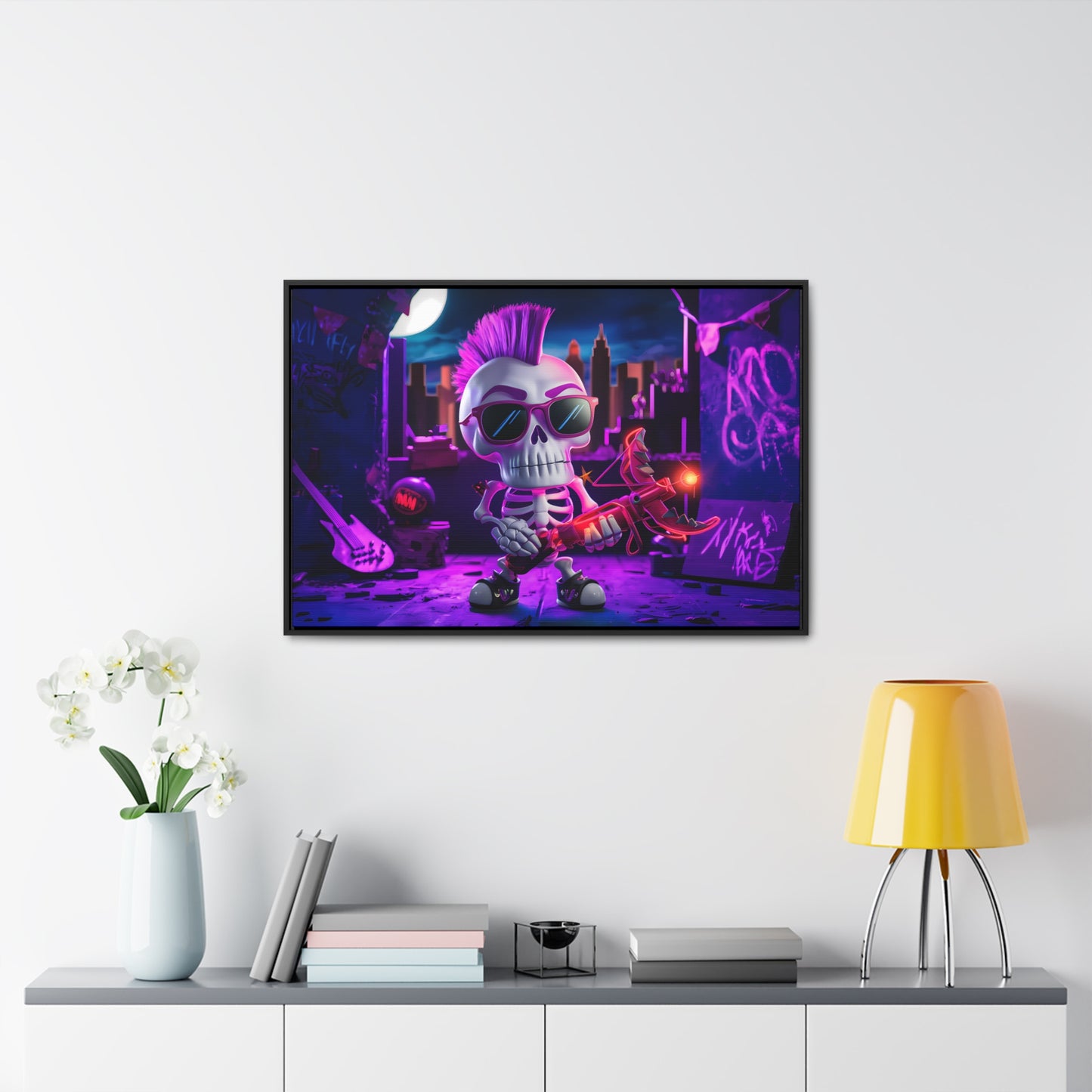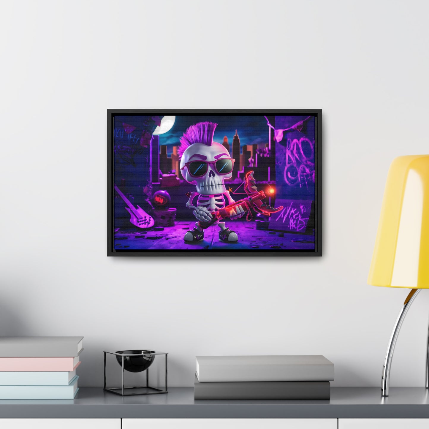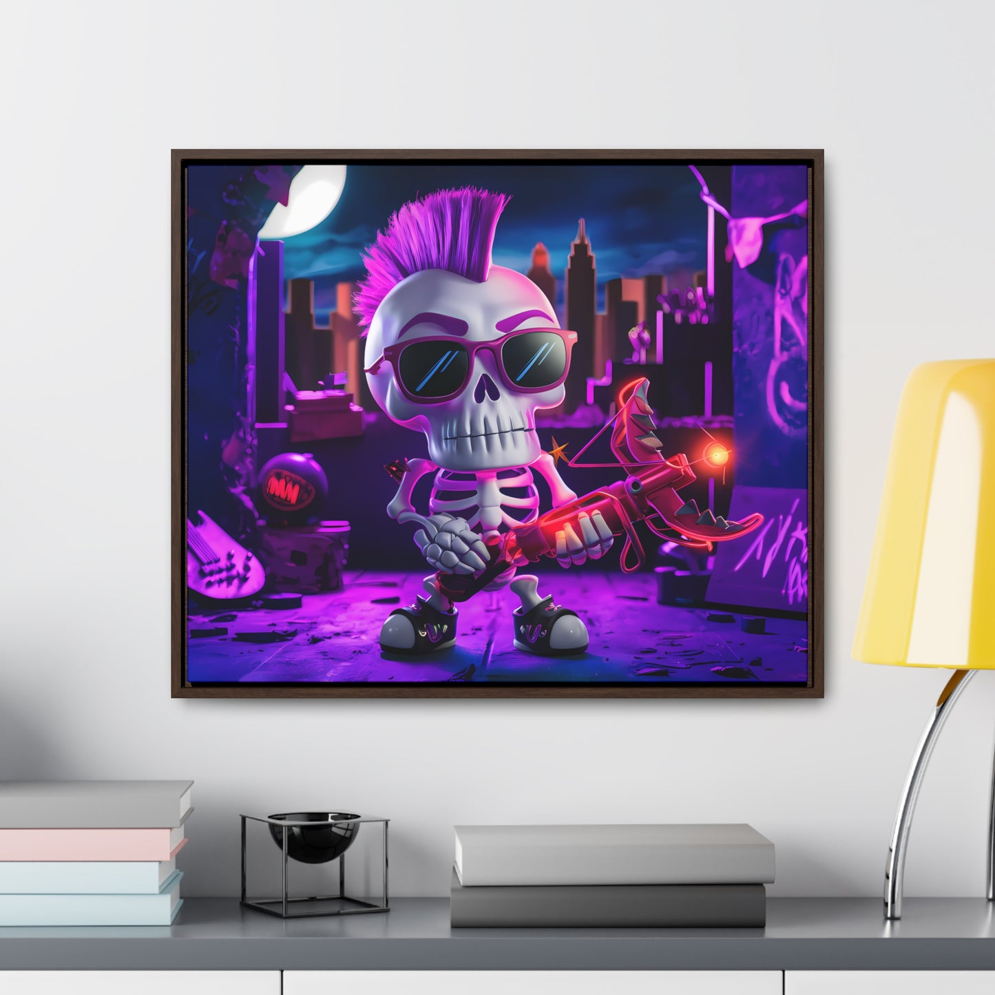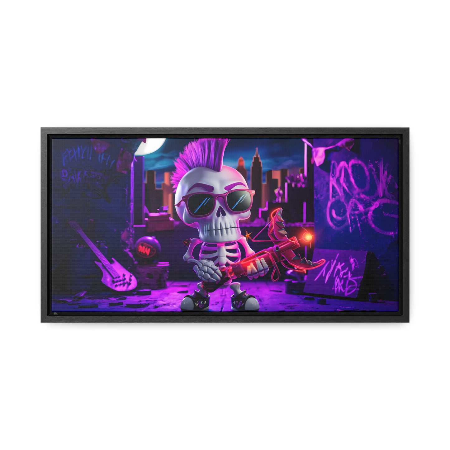 "Punk Rock Skeleton Warrior in Neon City" - Gallery Canvas Wraps, Horizontal Frame