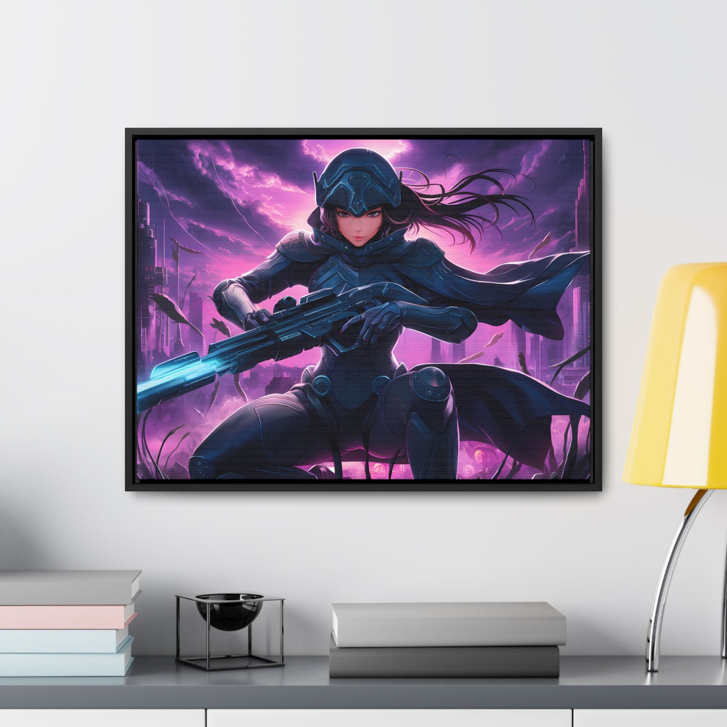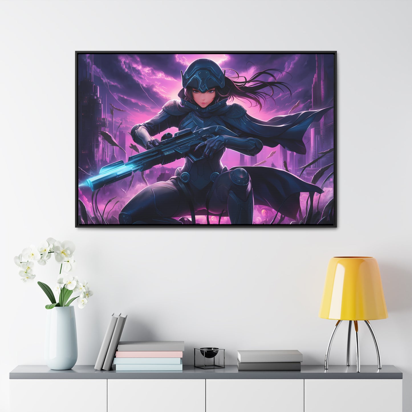 Shadow Sentinel: Neon Hunter - Gallery Canvas Wraps, Horizontal Frame