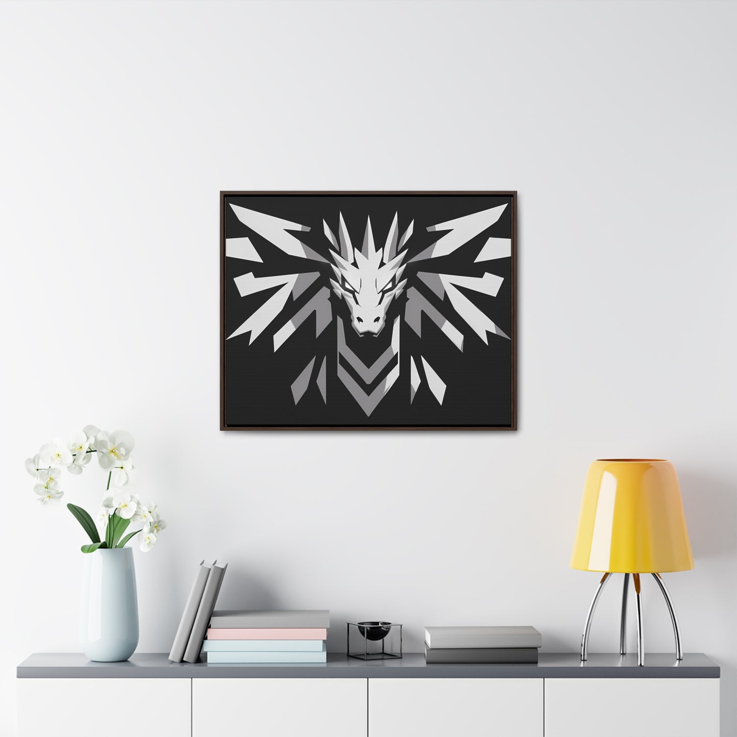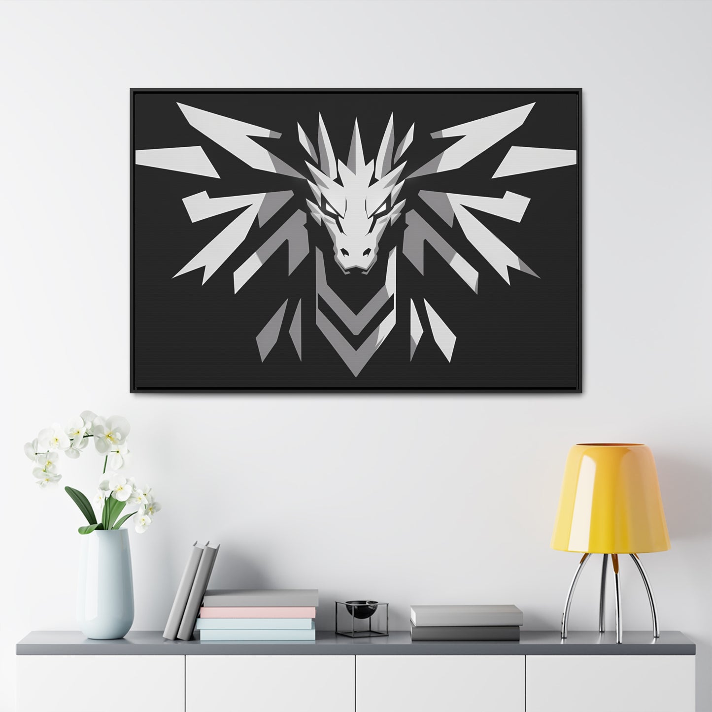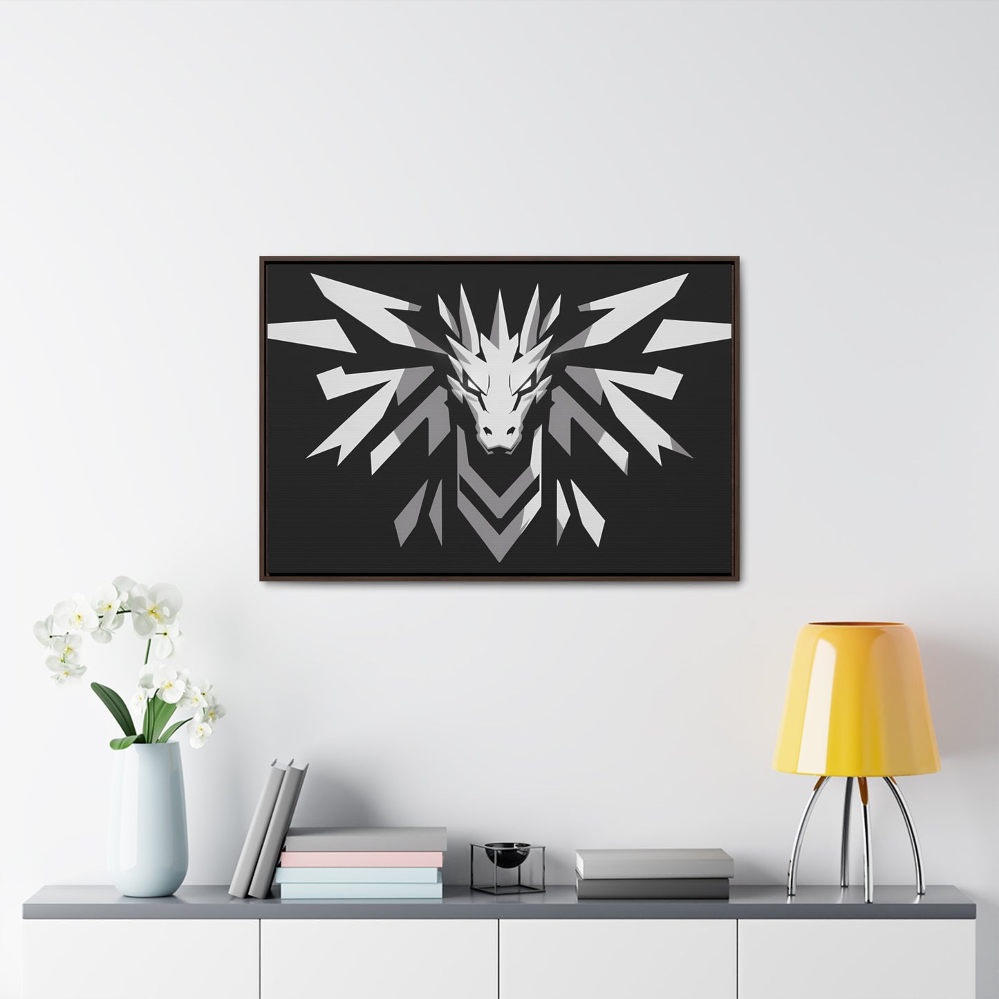 "Silver Dragon Crest" - Gallery Canvas Wraps, Horizontal Frame